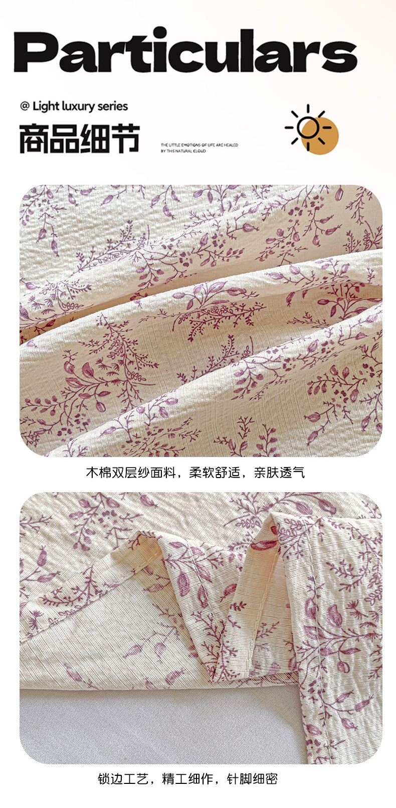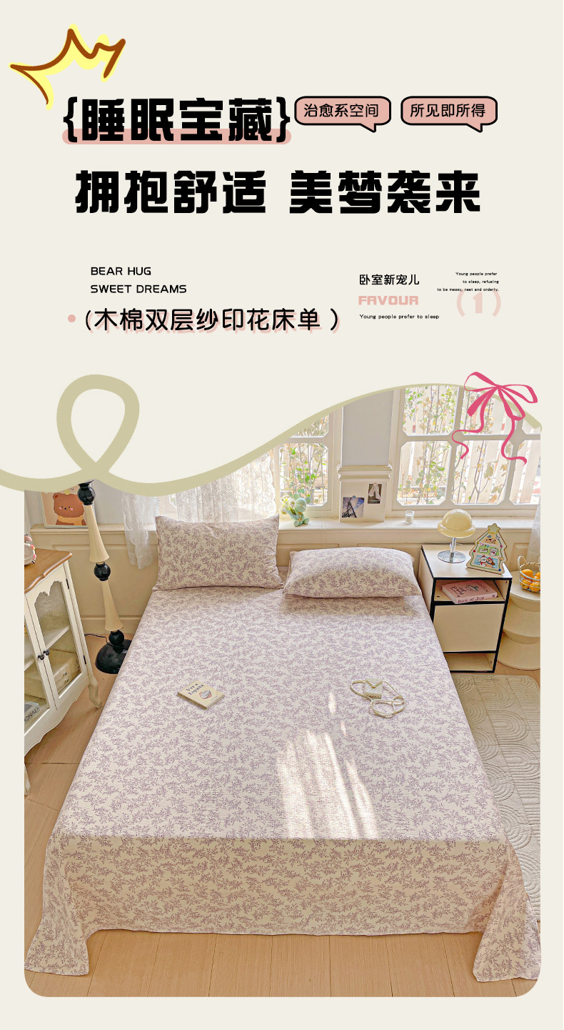 当前位置: 91家纺网 > 商品网购 > 床品套件 > 四件套 > 双层纱四件套 > 暖芯优选 2025新款母婴级ins小清新双层纱印花床单枕套三件套(提供买家秀) 花晨月夕