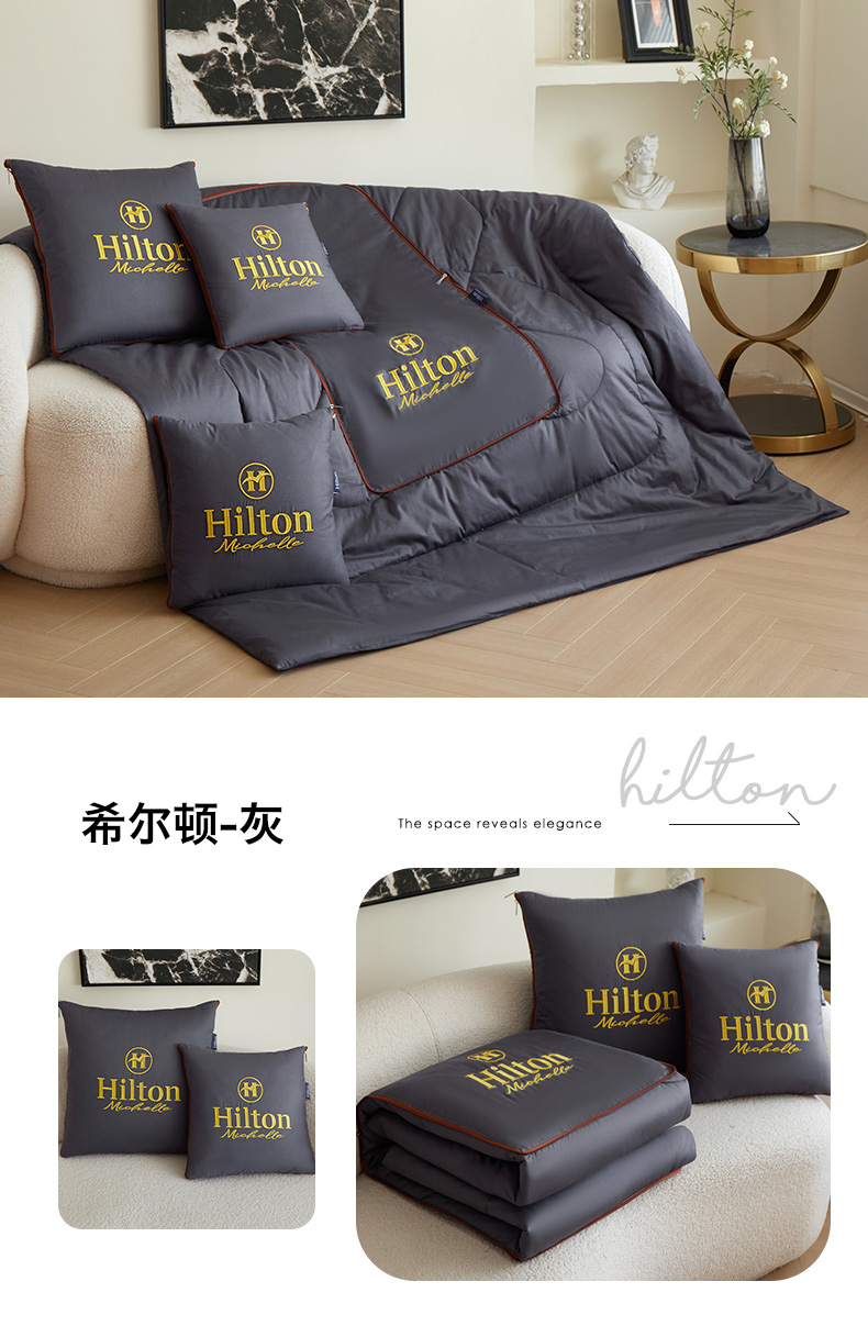 商品名称:宝马家纺(原梦童画) 2025新款全棉刺绣希尔顿四季款抱枕被 希尔顿-灰