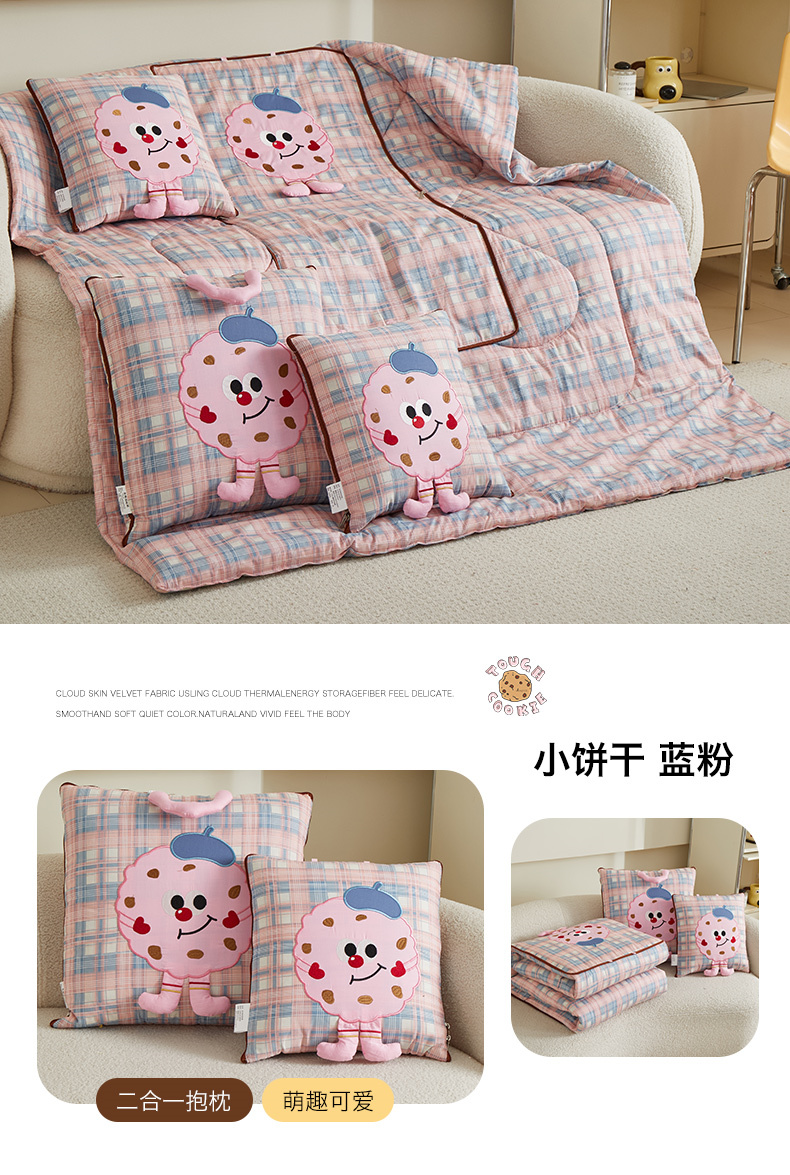 商品名称:宝马家纺(原梦童画) 2025新款全棉四季款小饼干抱枕被 小饼干-蓝粉