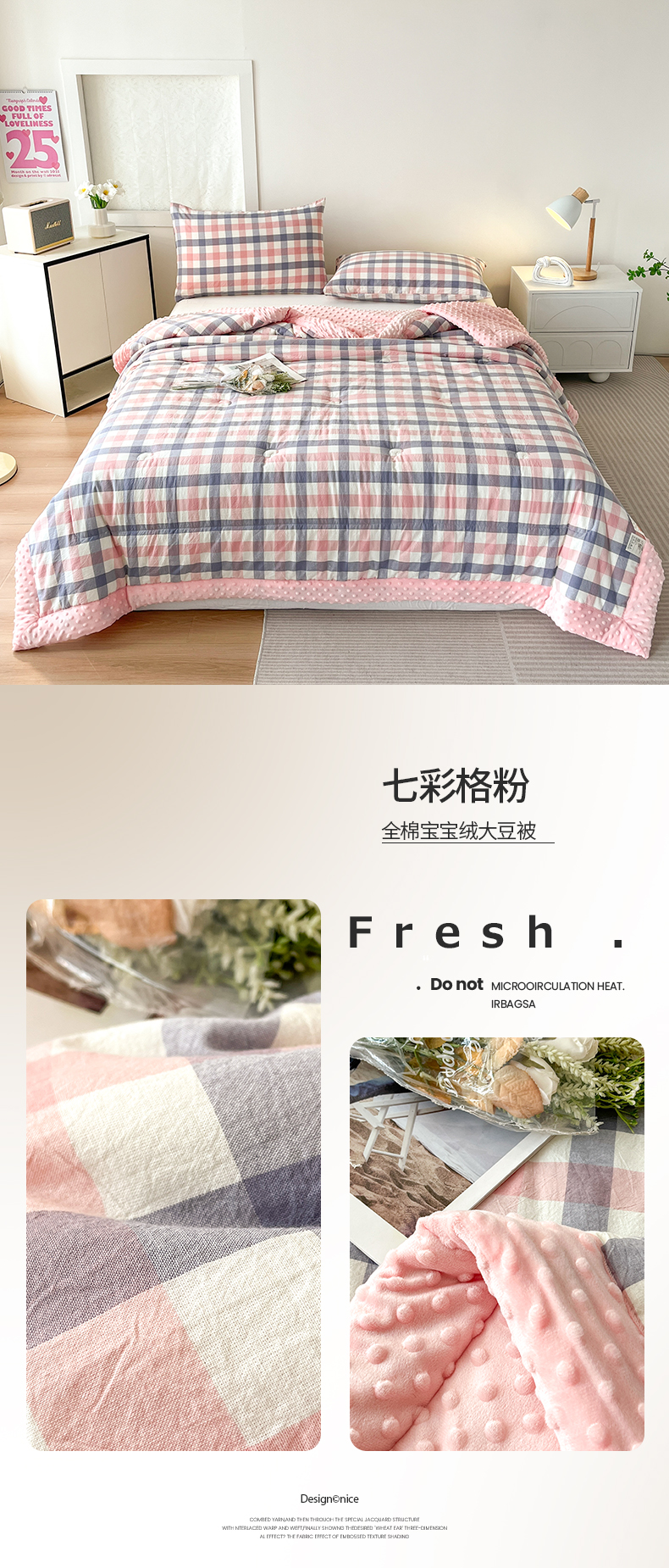 • 91家纺网 家纺一手货源 找家纺 鸣升家纺 2025新款全棉豆豆被被子被芯 莫妮卡兰