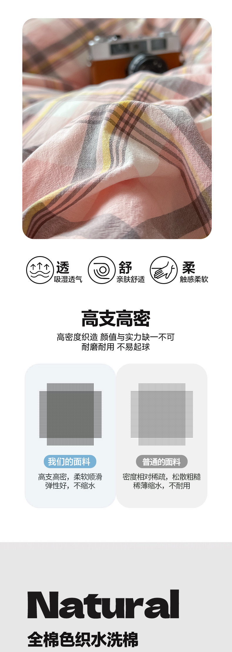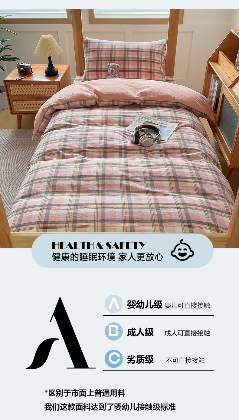 商品名称:鸣升家纺 2025新款全棉纯棉色织水洗棉学生三件套 莫妮卡粉