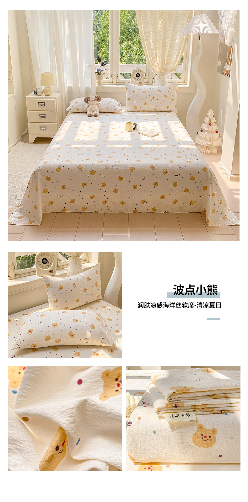 • 91家纺网 家纺一手货源 找家纺 眠势力 2025新款云感双层纱床单三件套ins奶油风学生宿舍床单四季通用 乖乖兔