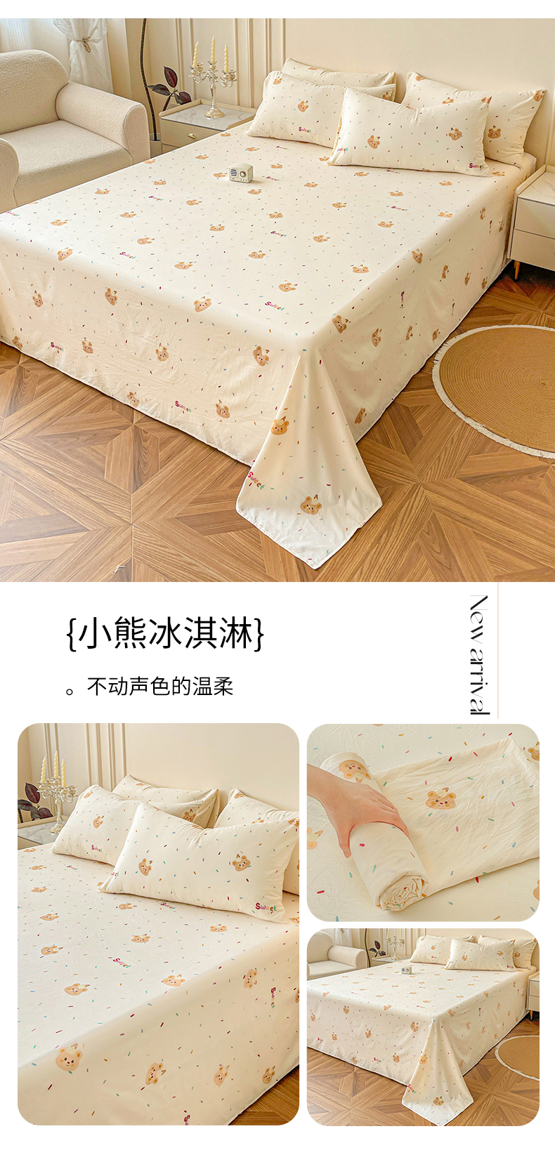 商品名称:纽缦家纺 2025新款水洗双层纱床单 小熊冰淇淋