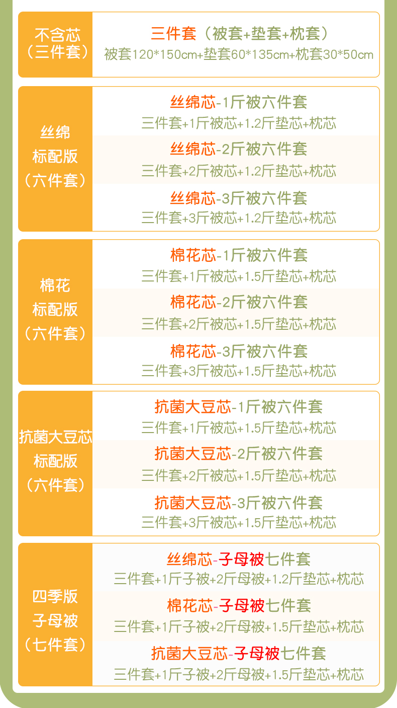 1.5+2.5子母款棉花七件套 | ¥132.00 |