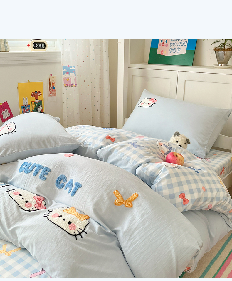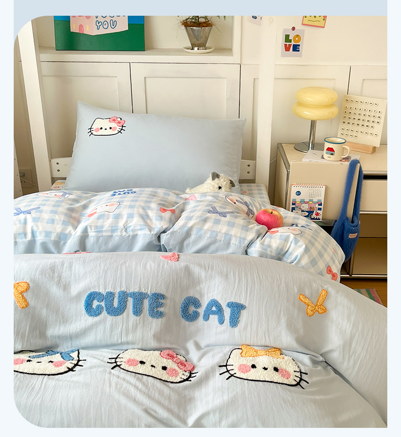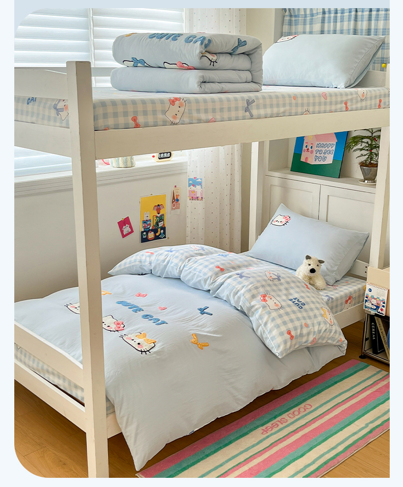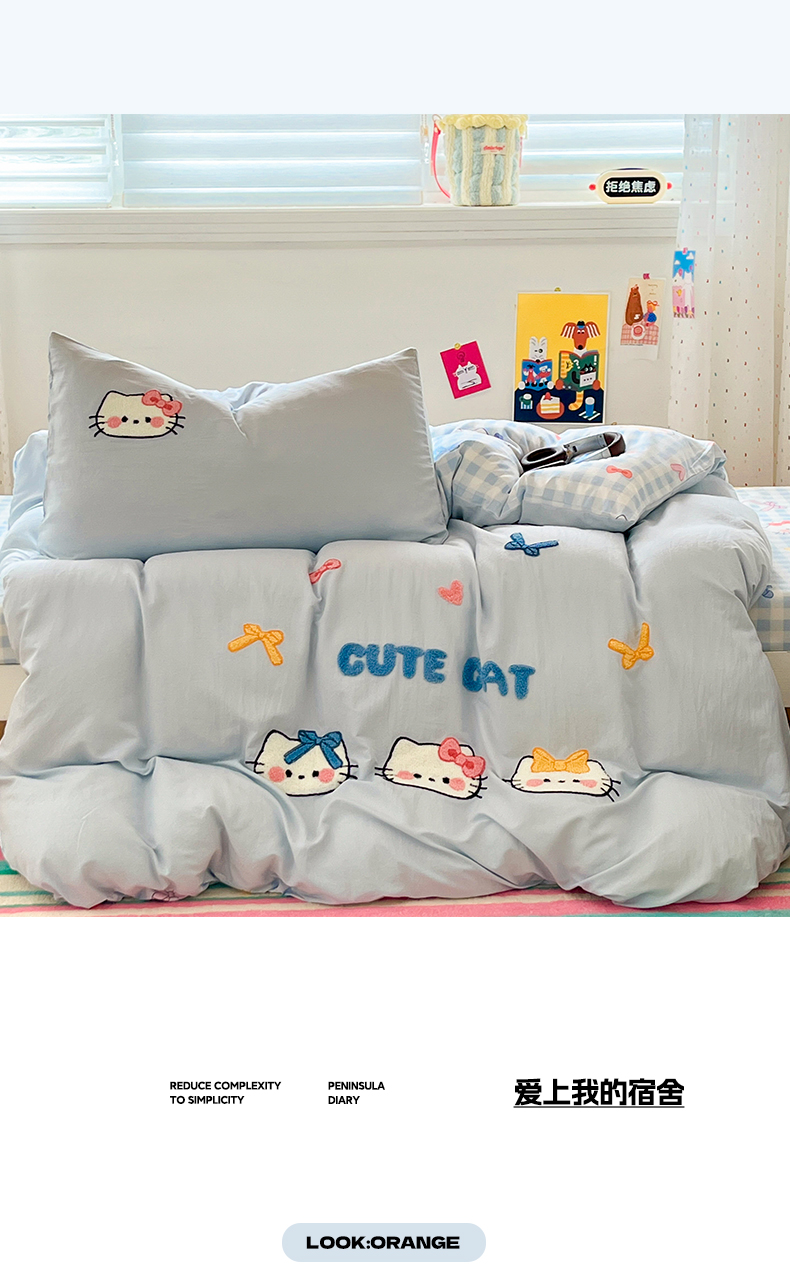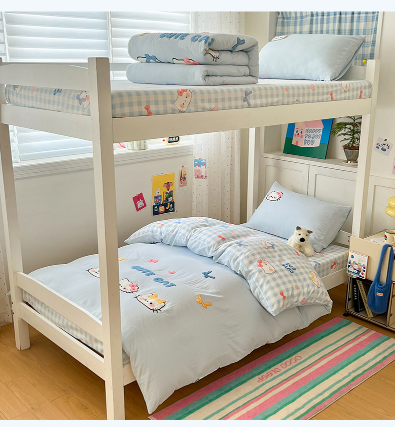 当前位置: 91家纺网 > 商品网购 > 床品套件 > 三件套 > 如一 2025新款A类卡通毛巾绣水洗云朵棉学生宿舍床三件套 蓝格猫