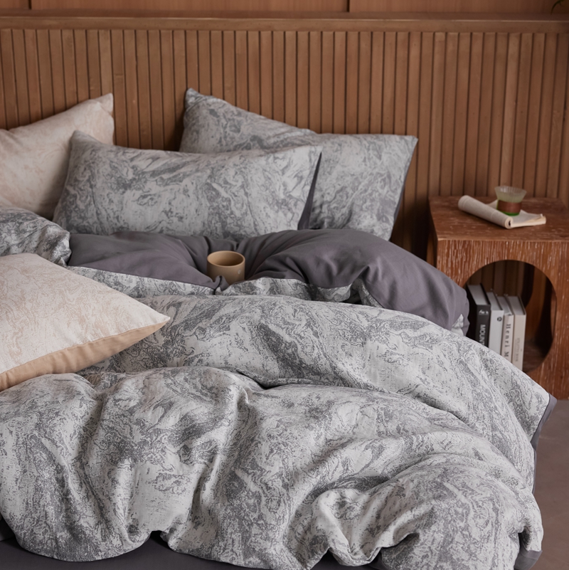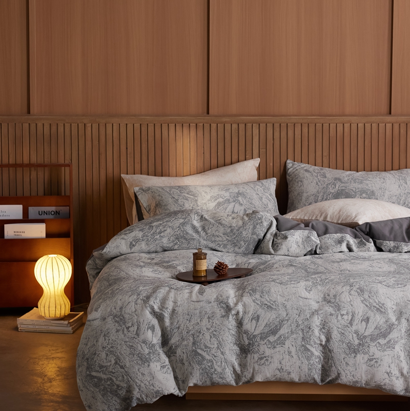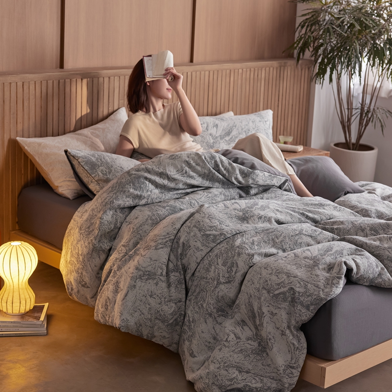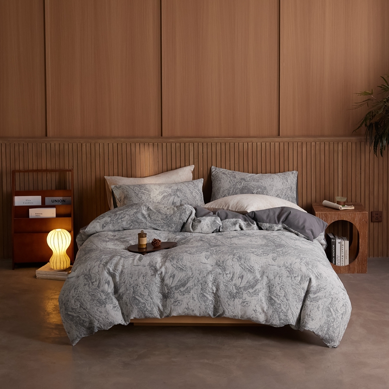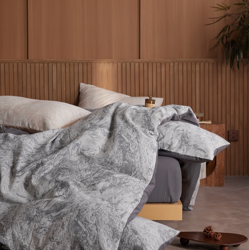 (总)梦享生活家居 2025新款全棉肌理纹提花四件套,灰黑色
