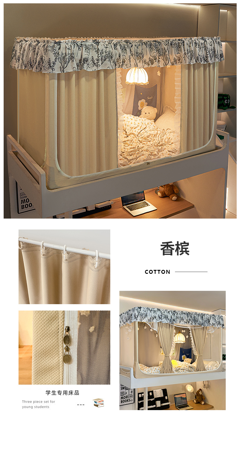 当前位置: 91家纺网 > 商品网购 > 床上用品 > 蚊帐 > 学生蚊帐 > 飞轮海蚊帐2025新款学生宿主三开门遮光蚊帐XZ-97棉麻花边款 全底加高1.2 6面全包 香槟