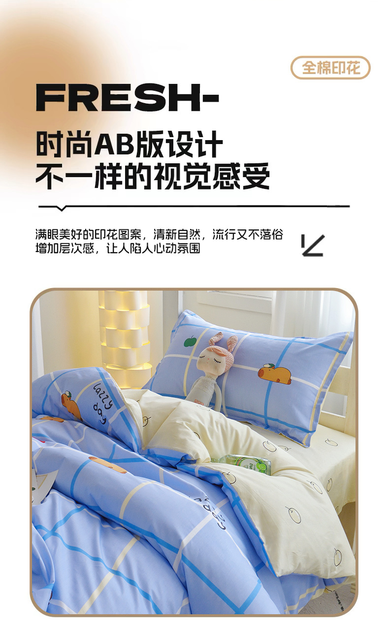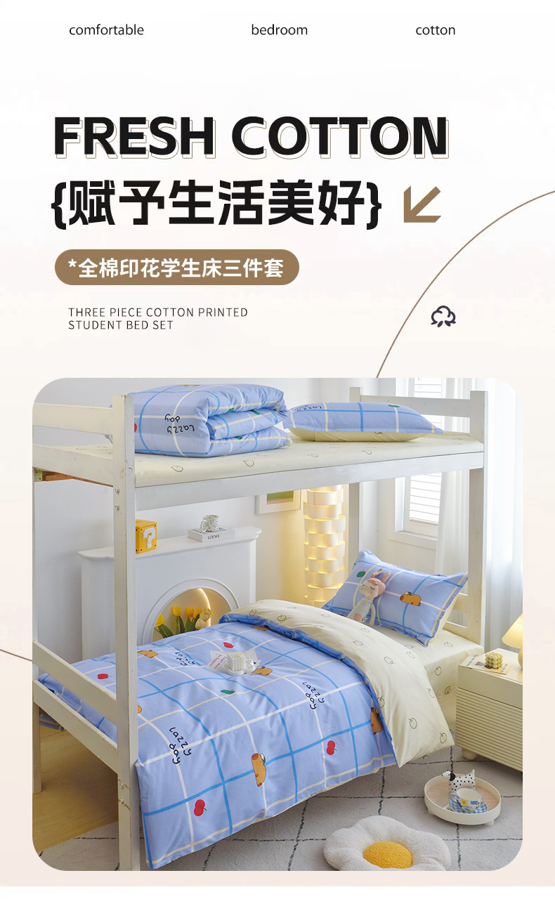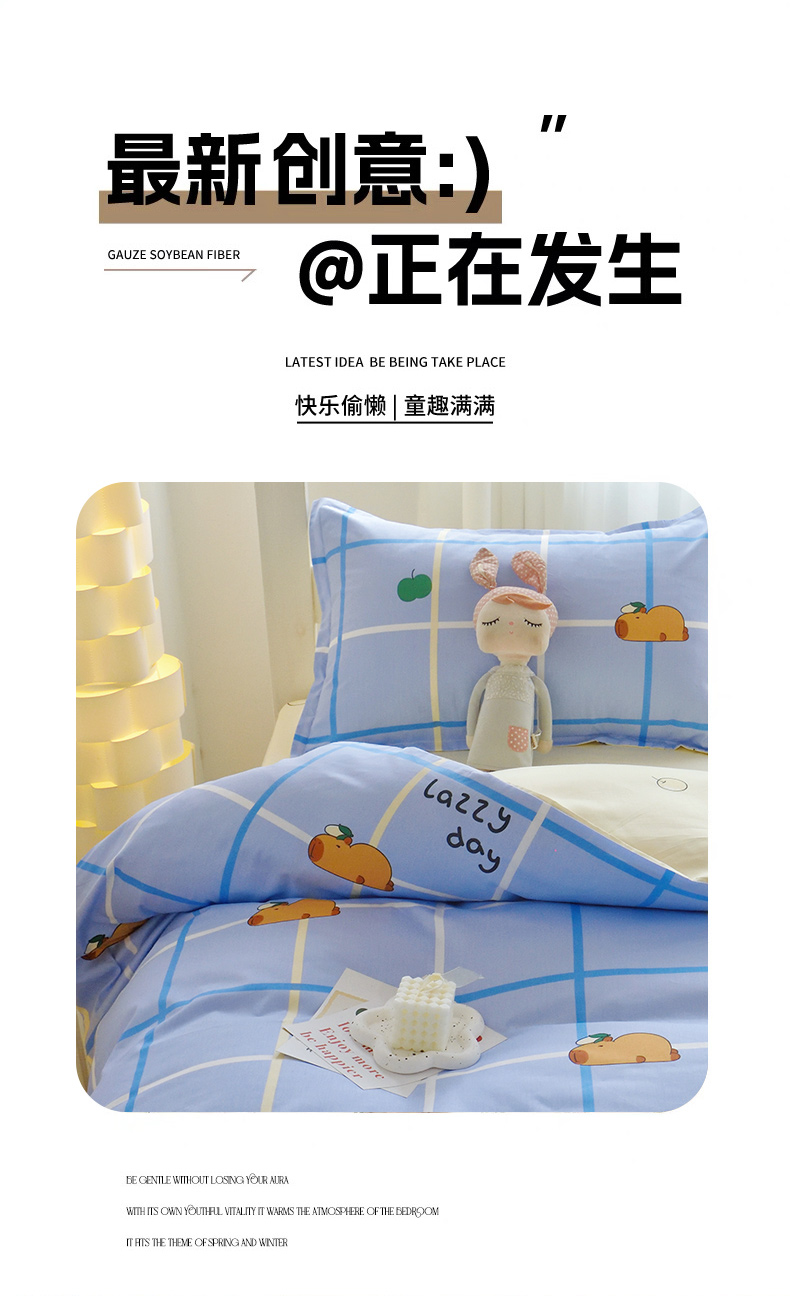 当前位置: 91家纺网 > 商品网购 > 床品套件 > 多件套 > 多件套 > 天之爱 2025年新款13372全棉三件套学生上下铺6件套多件套 卡皮巴拉蓝