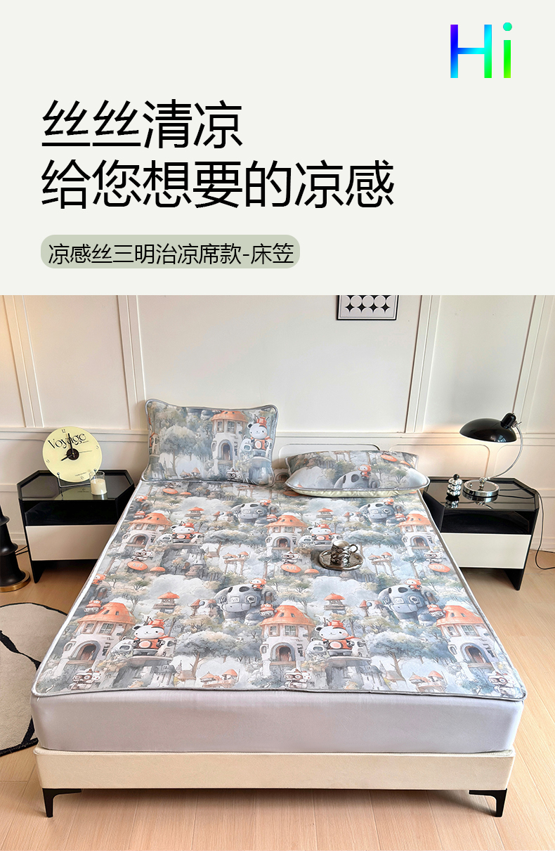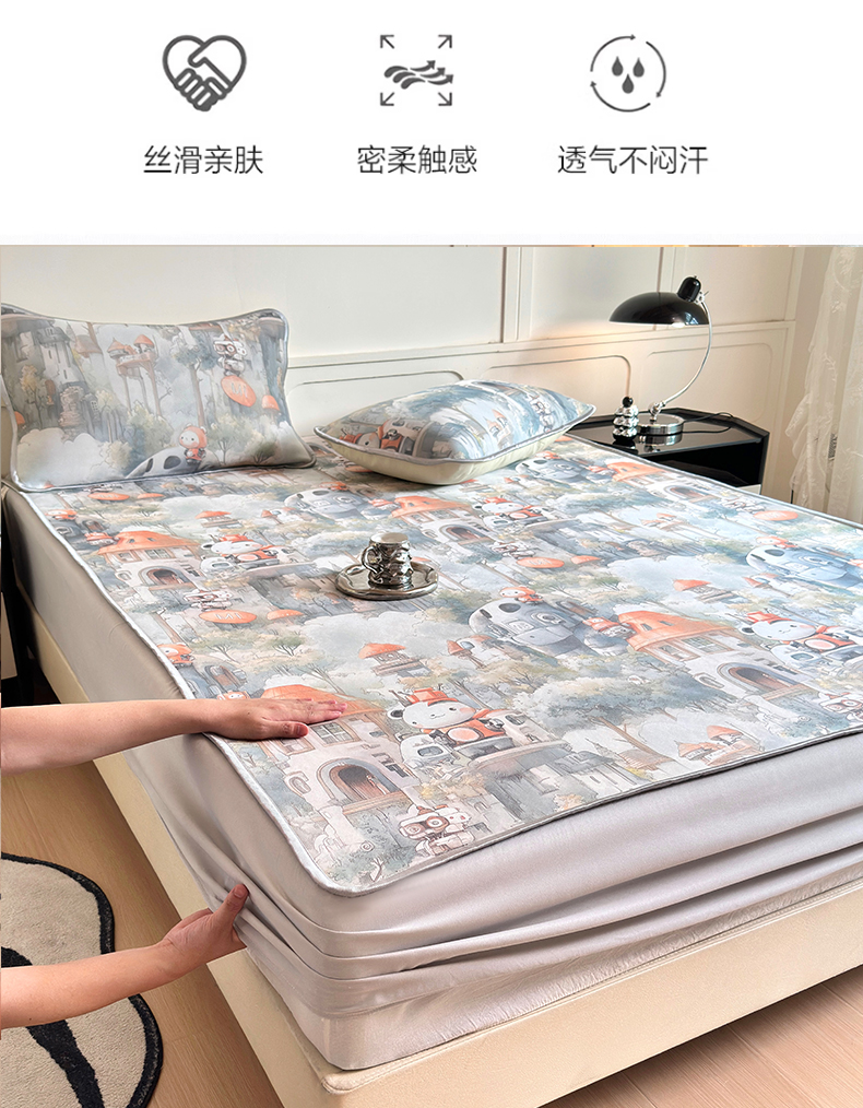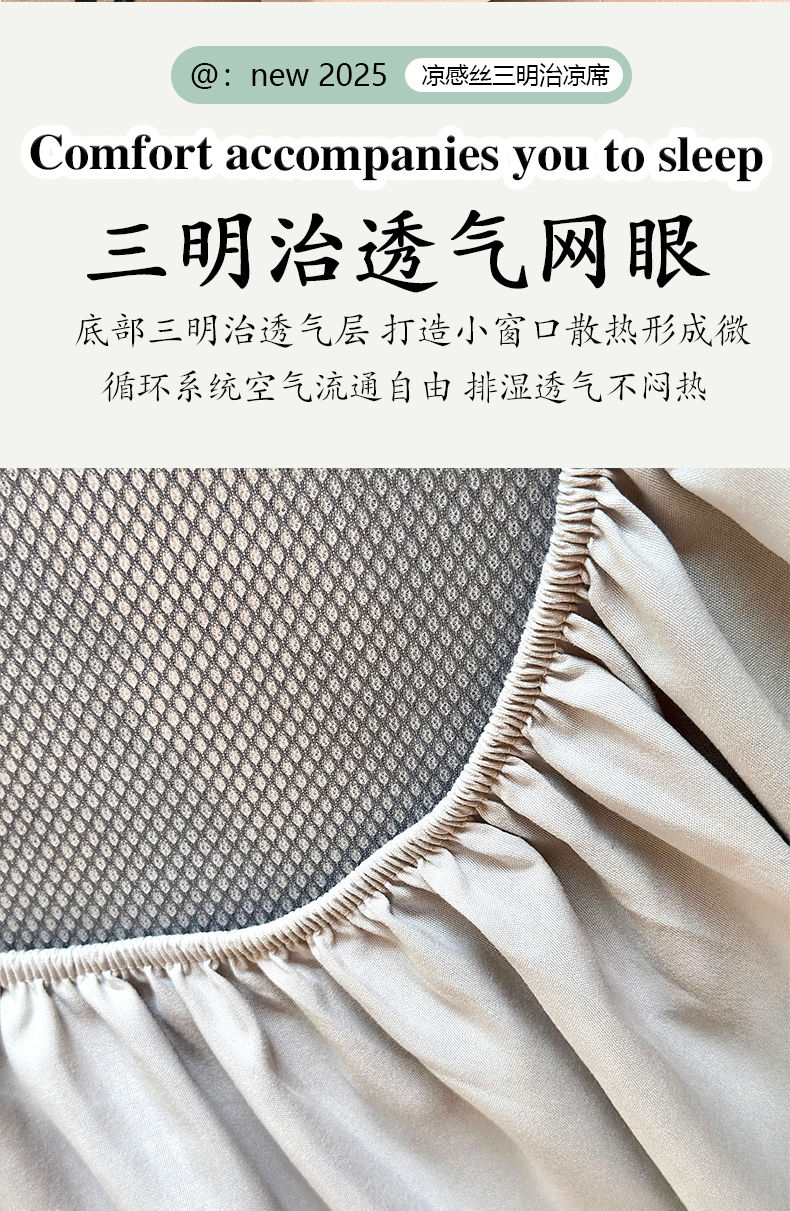 商品名称:乐居家纺 2025新款凉感丝三明治床笠款凉席席子 幻谷