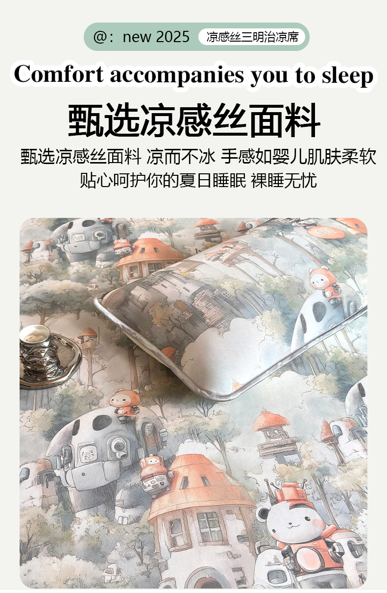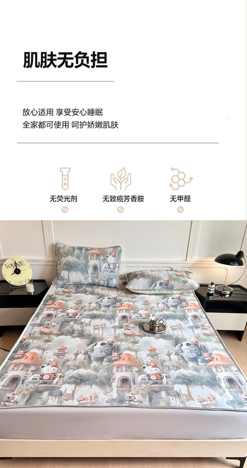 (总)乐居家纺 2025新款A类凉感纤维凉豆豆可水洗冰丝凉席席子床笠款,咖色-树叶,蓝色-相聚,绿色小熊,浅灰-密道,浅灰-树叶,浅灰-银杏叶,水绿-银杏叶,玉色-树叶