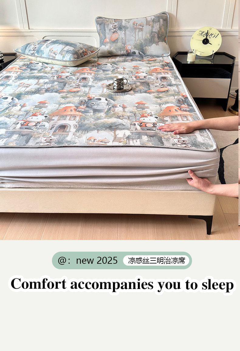 乐居家纺 2025新款凉感丝三明治床笠款凉席席子 幻谷