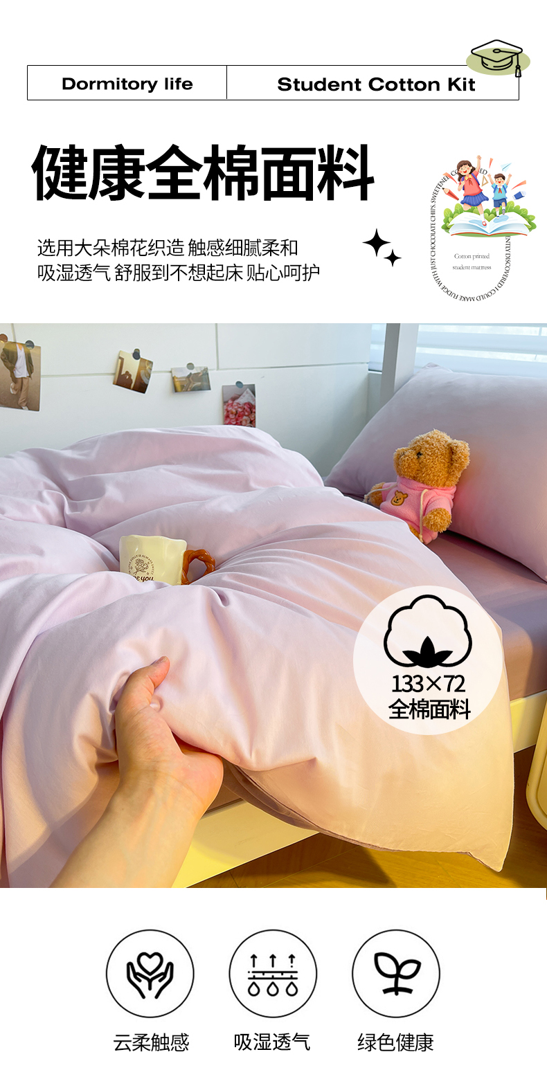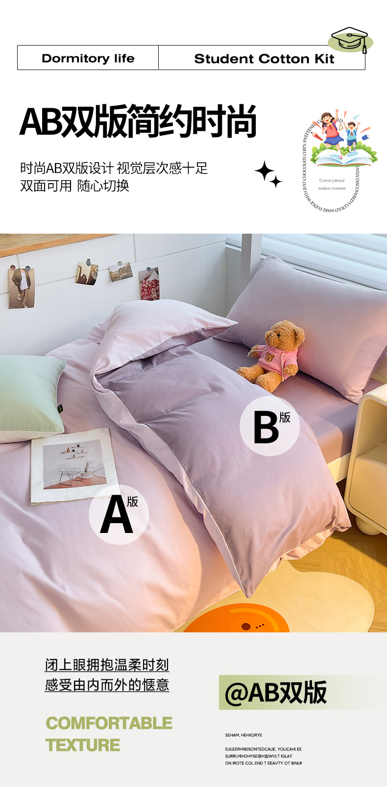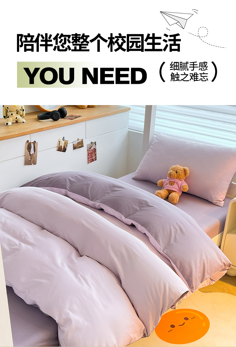 当前位置: 91家纺网 > 商品网购 > 床品套件 > 三件套 > 澳梵家居 2025春夏新款13372全棉纯棉学生宿舍上下铺三件套床笠款 淡紫 黛紫