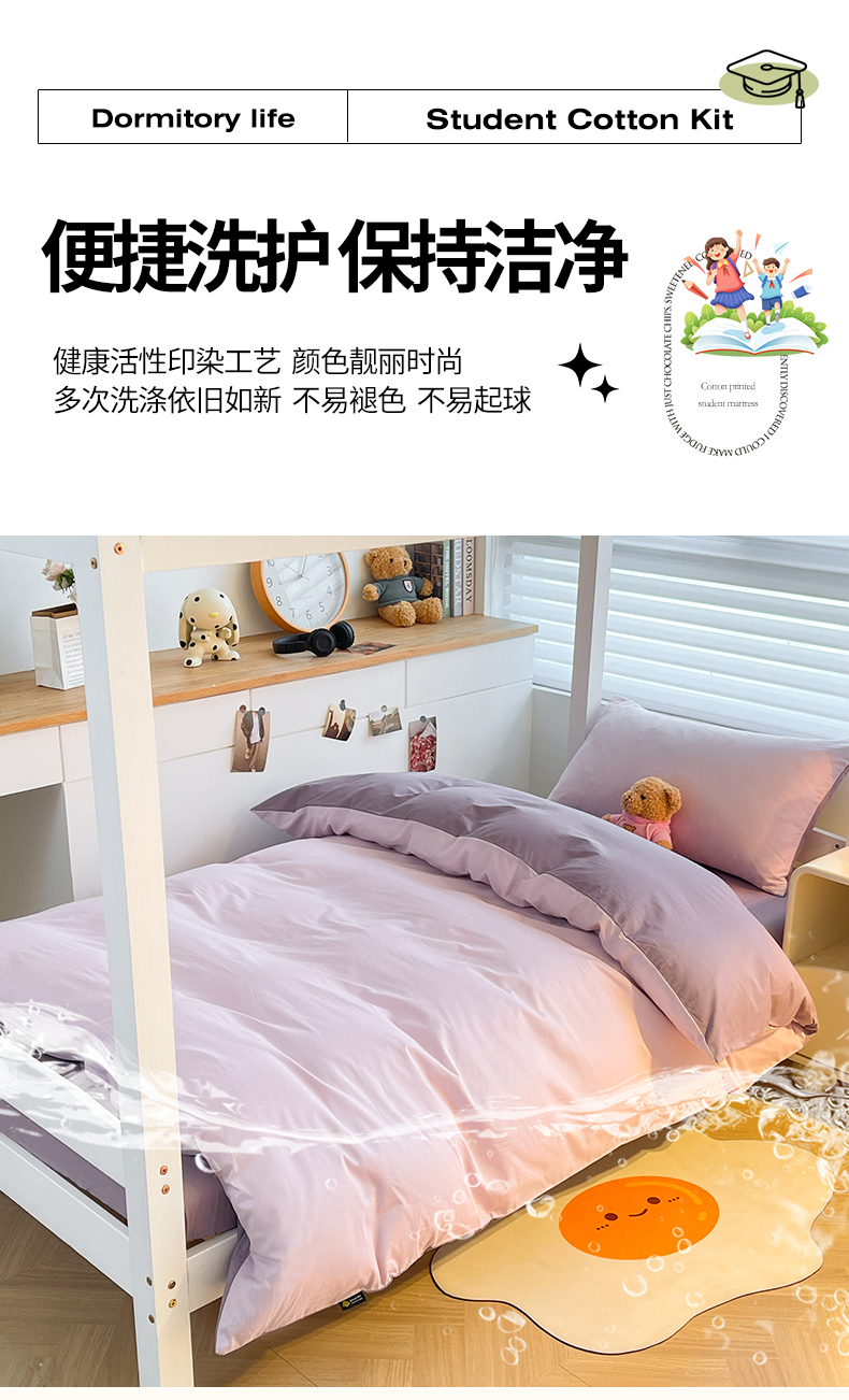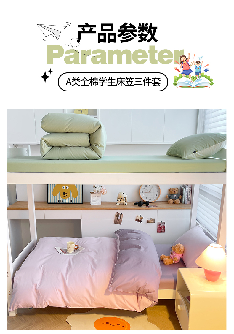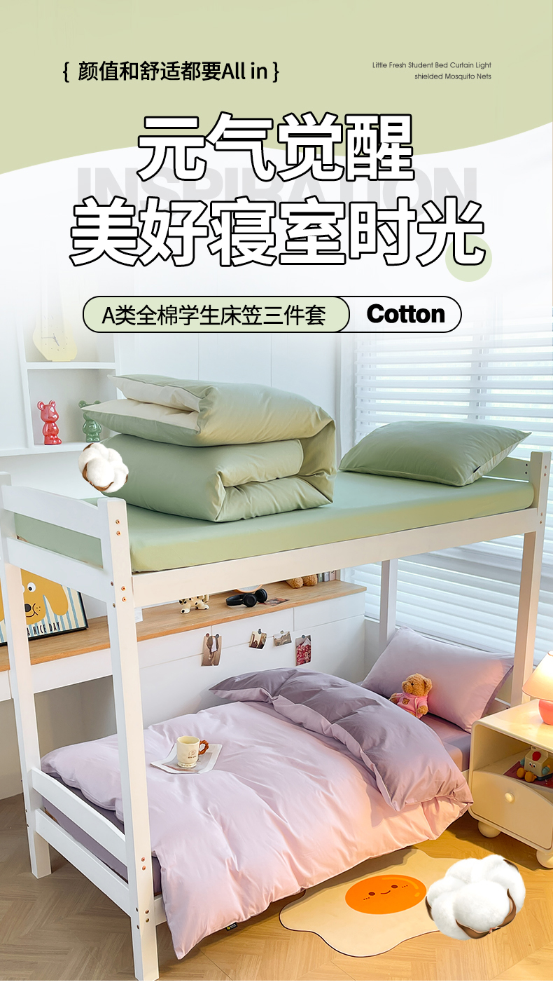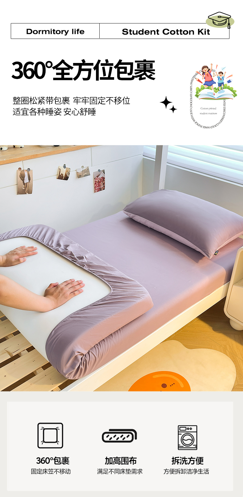 当前位置: 91家纺网 > 商品网购 > 床品套件 > 三件套 > 澳梵家居 2025春夏新款13372全棉纯棉学生宿舍上下铺三件套床笠款 淡紫 黛紫