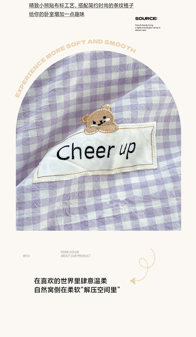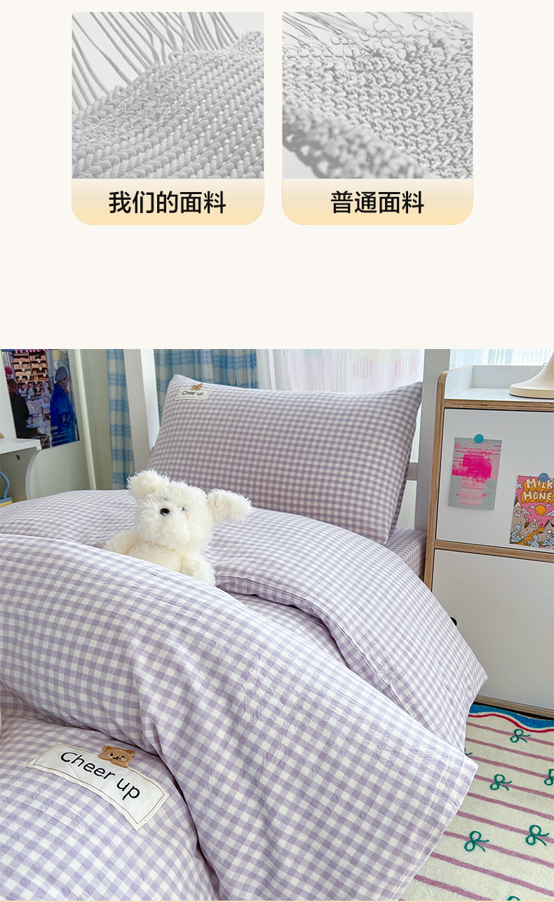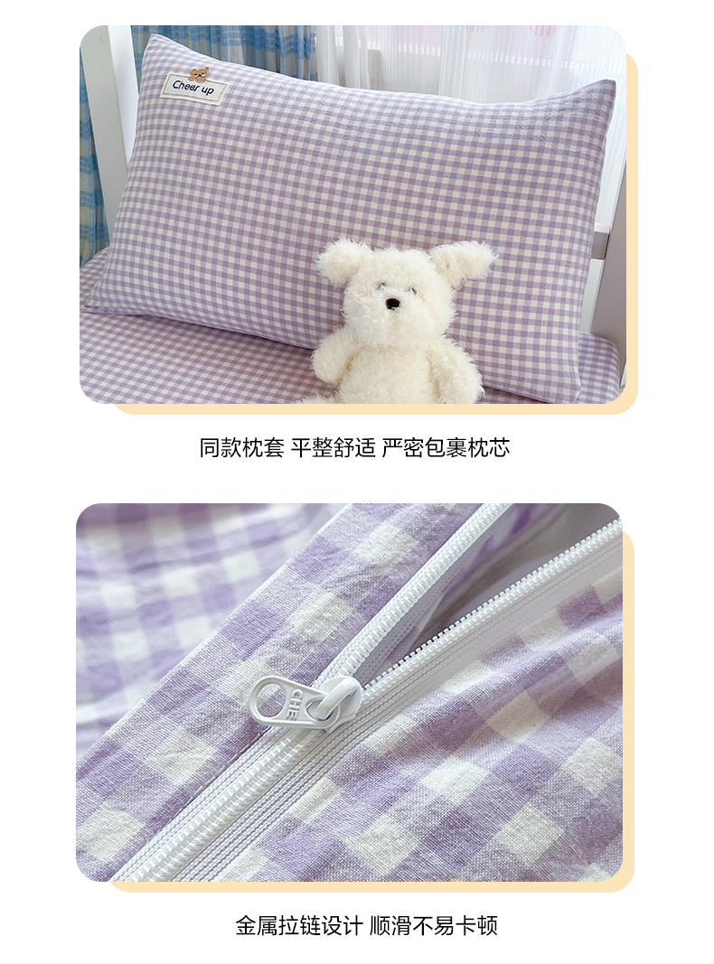 商品名称:佳笠家居 2025新款kimi熊系列A类宿舍全棉纯棉色织水洗棉枕套单枕套枕套单件 香芋紫格