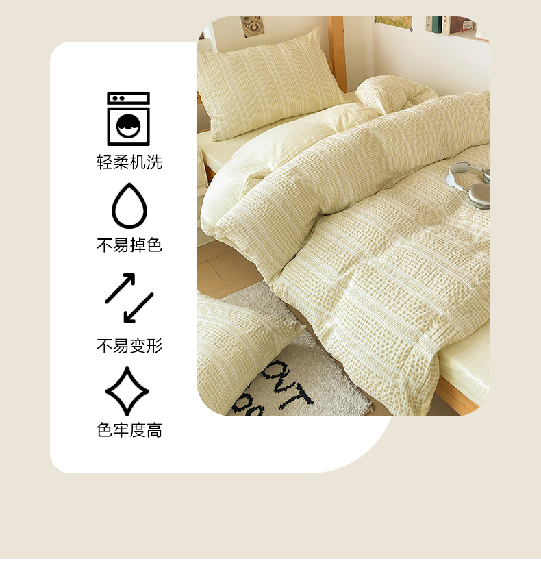 商品名称:卡普家居 2025新款阳离子公主格学生三件套 阳离子公主格柚子黄