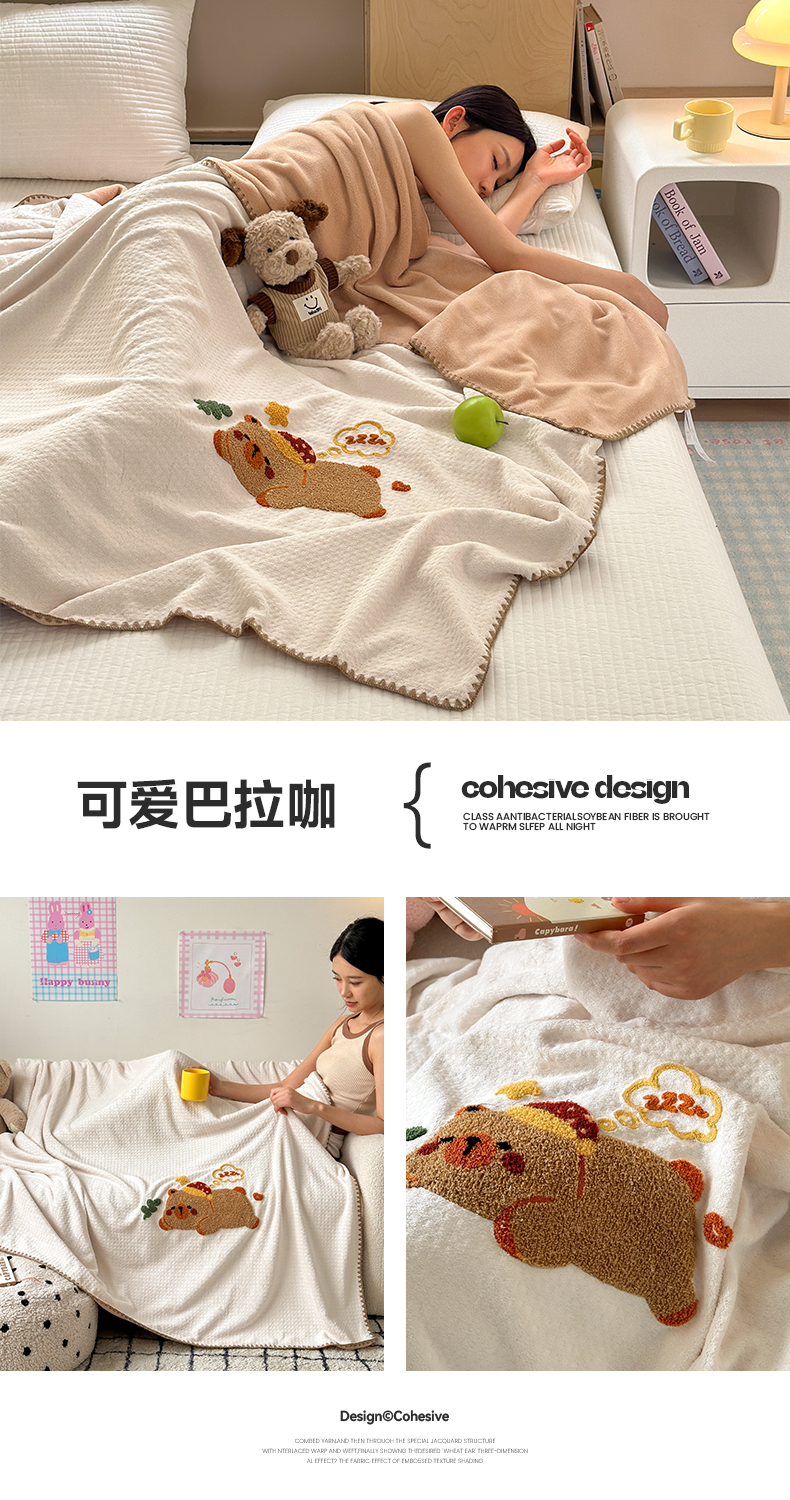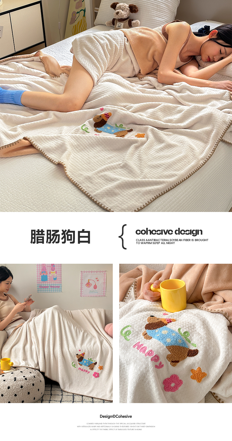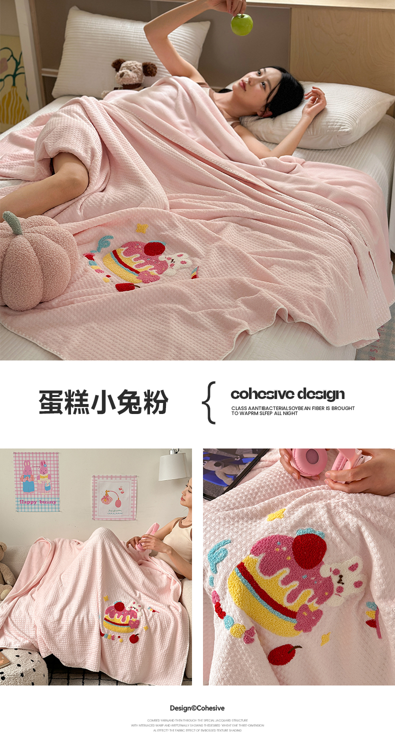 商品名称:艾佳2025新款卡通绣花款小华夫格毛毯毯子 组合