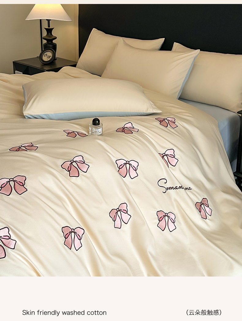 当前位置: 91家纺网 > 商品网购 > 床品套件 > 四件套 > 水洗棉四件套 > 笙意家纺 2025新款亲肤水洗棉刺绣满绣四件套 蝴蝶结-奶昔白+天蓝