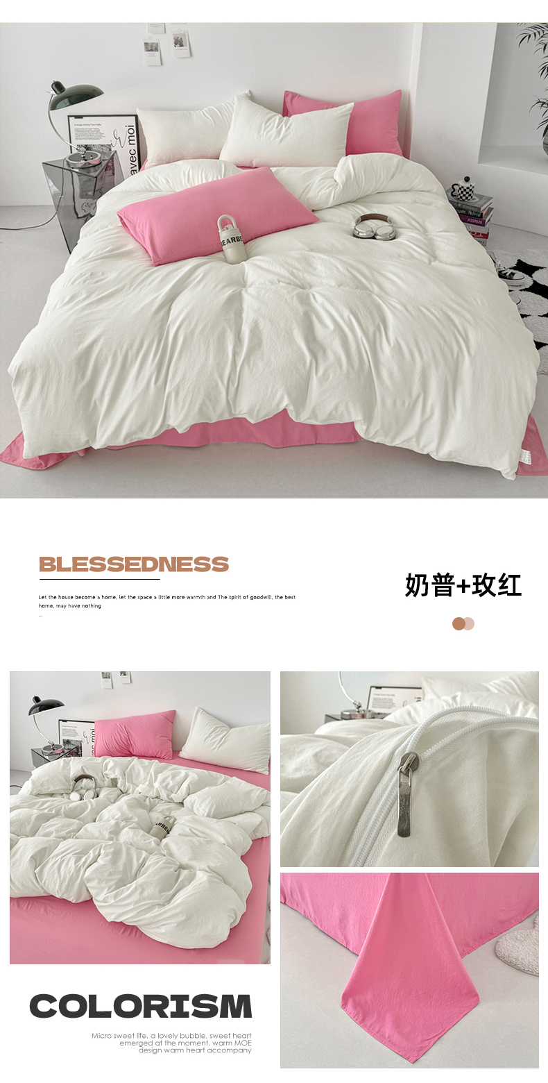 当前位置: 91家纺网 > 商品网购 > 床品套件 > 四件套 > 水洗棉四件套 > 芷凡家纺 2025新款A类加厚水洗棉云朵棉四件套 奶普+玫红