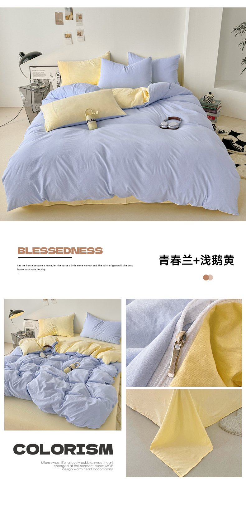 当前位置: 91家纺网 > 商品网购 > 床品套件 > 四件套 > 水洗棉四件套 > 芷凡家纺 2025新款A类加厚水洗棉云朵棉四件套 青春兰+浅鹅黄