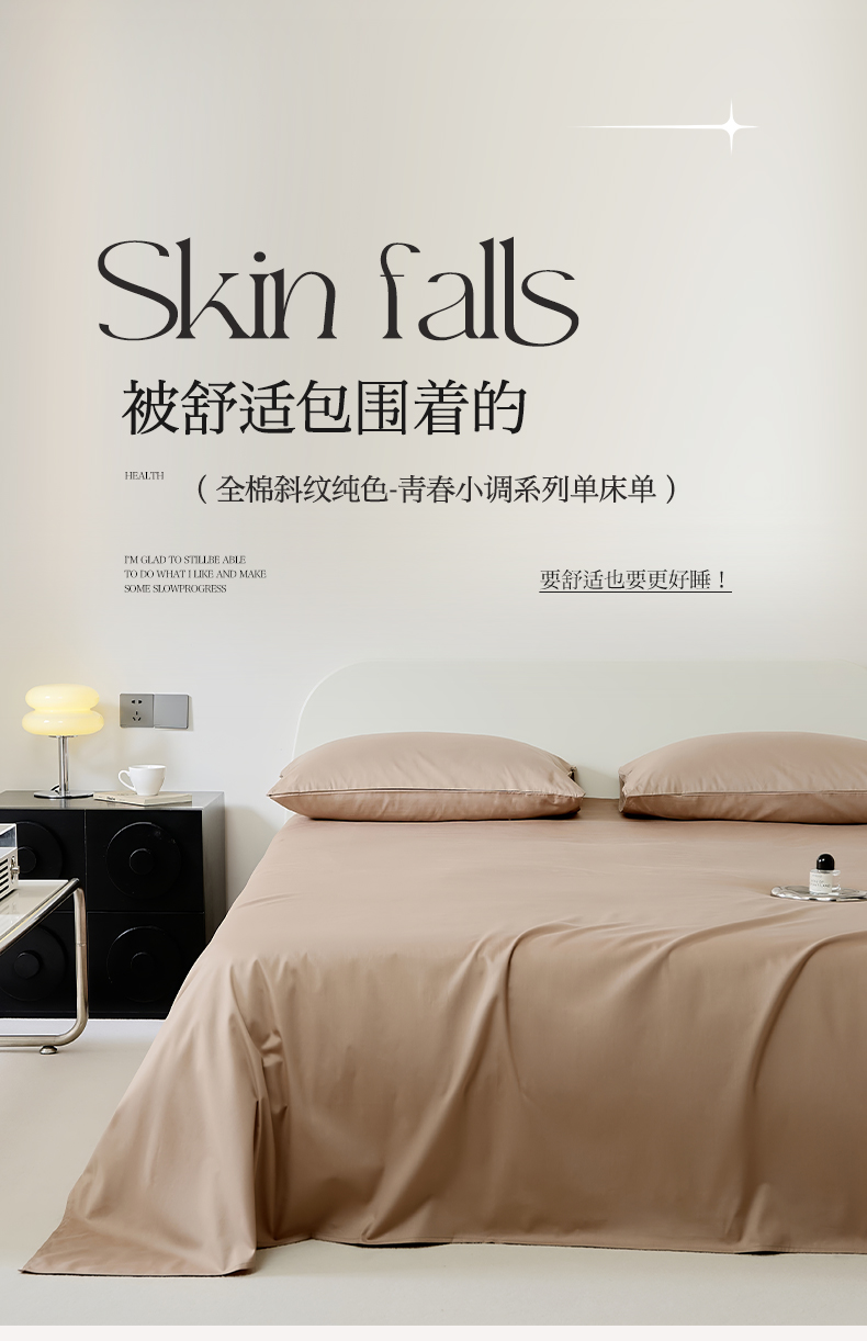 EH家居 2025新款全棉斜纹纯色-青春小调系列单床单 咖色