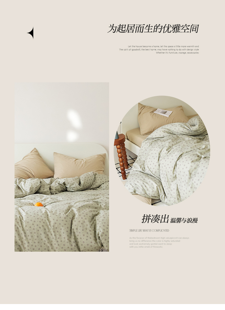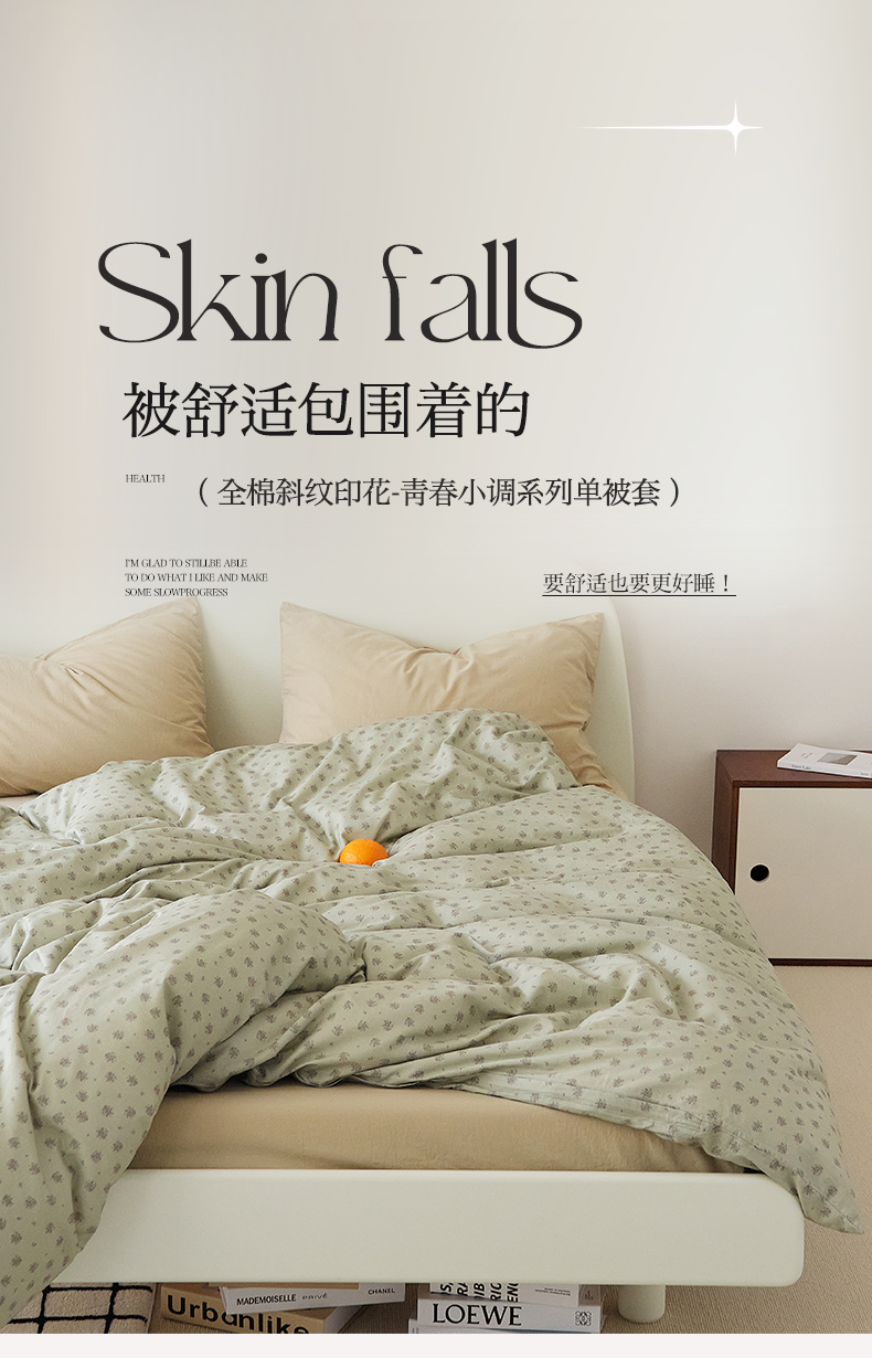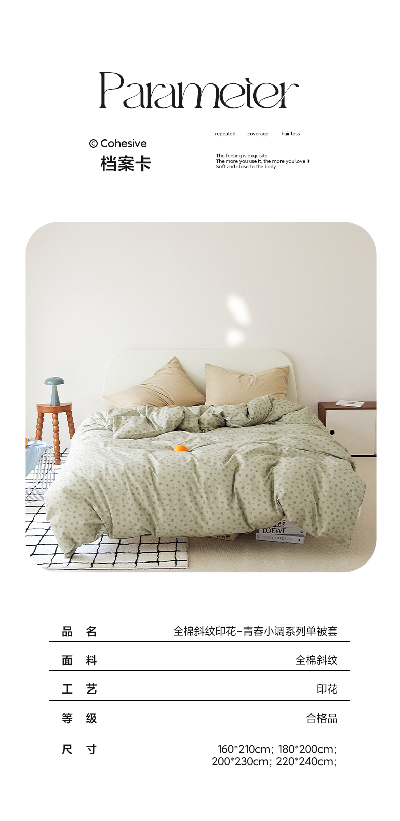 商品名称:EH家居 2025新款全棉斜纹印花-青春小调系列单被套 薄荷微苔花