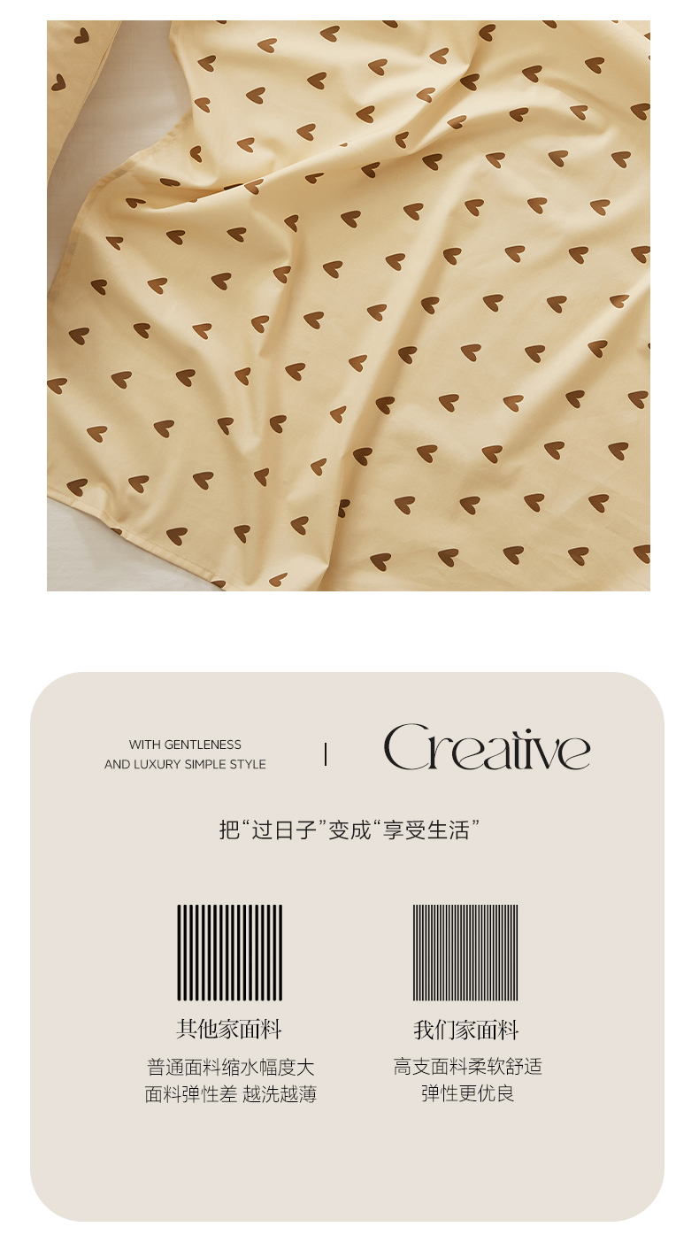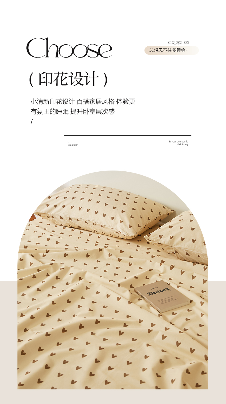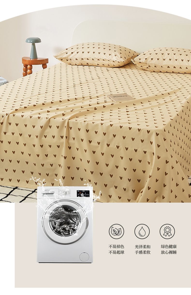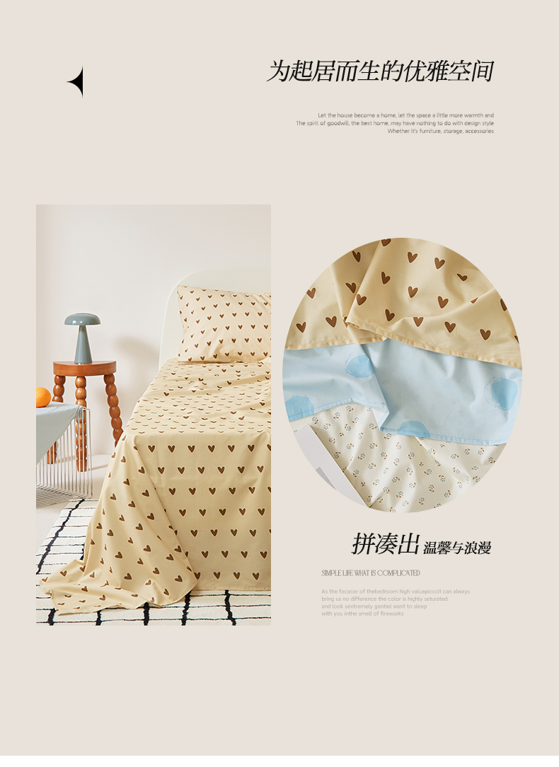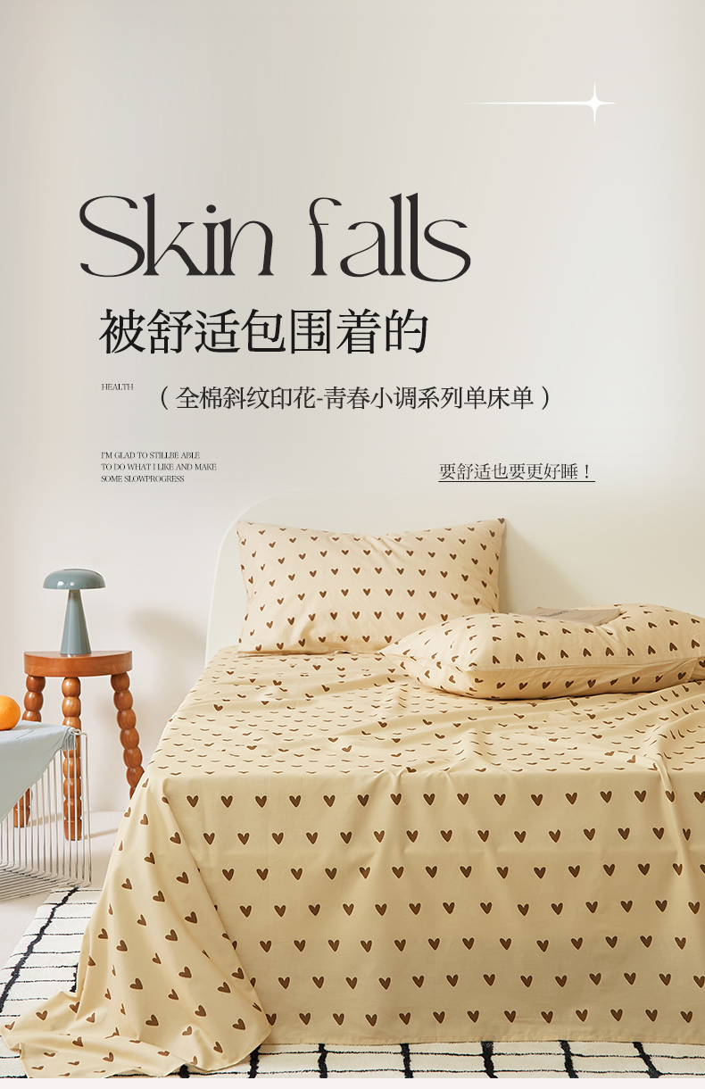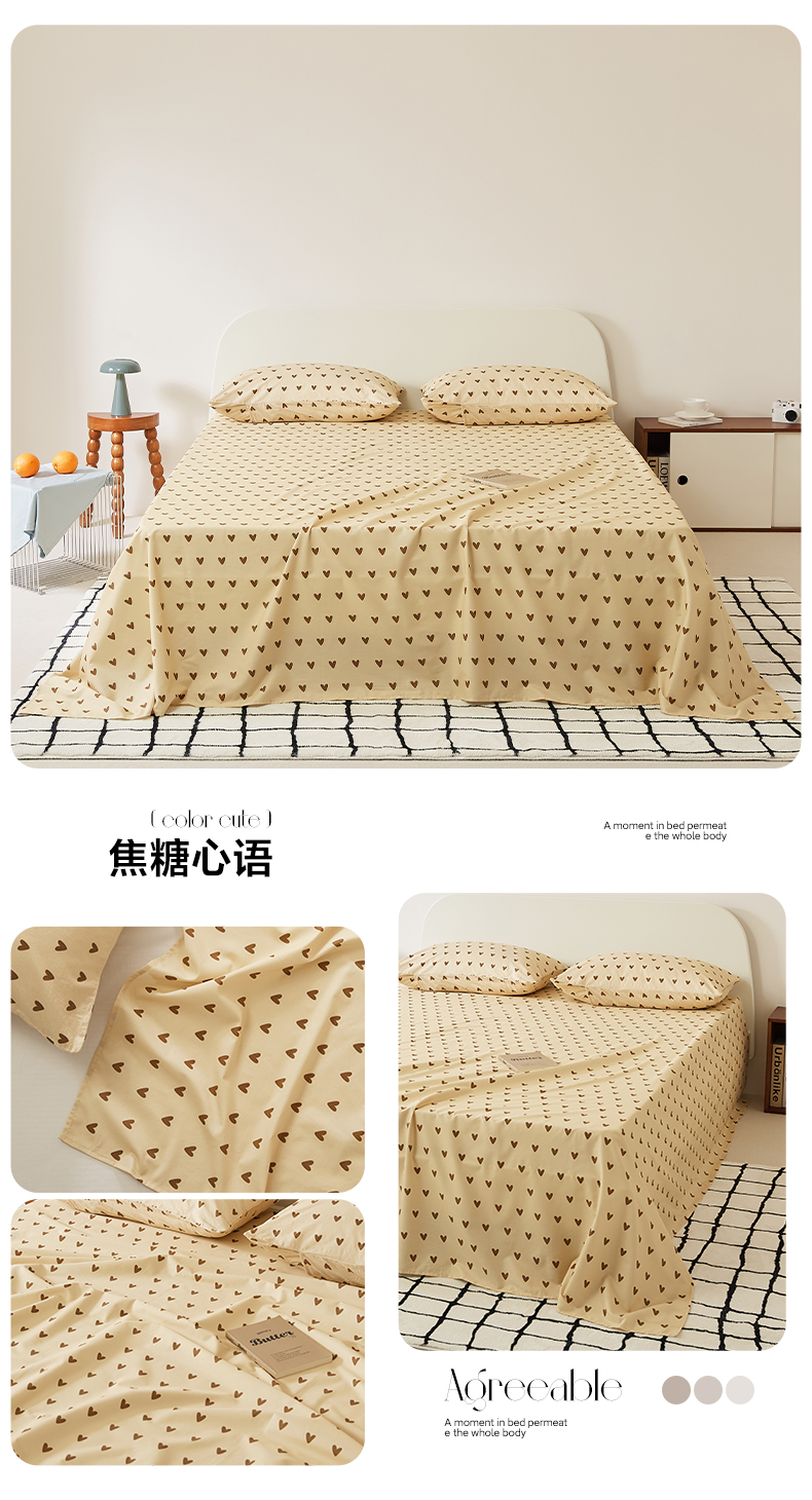 商品名称:EH家居 2025新款全棉斜纹印花-青春小调系列单床单 焦糖心语