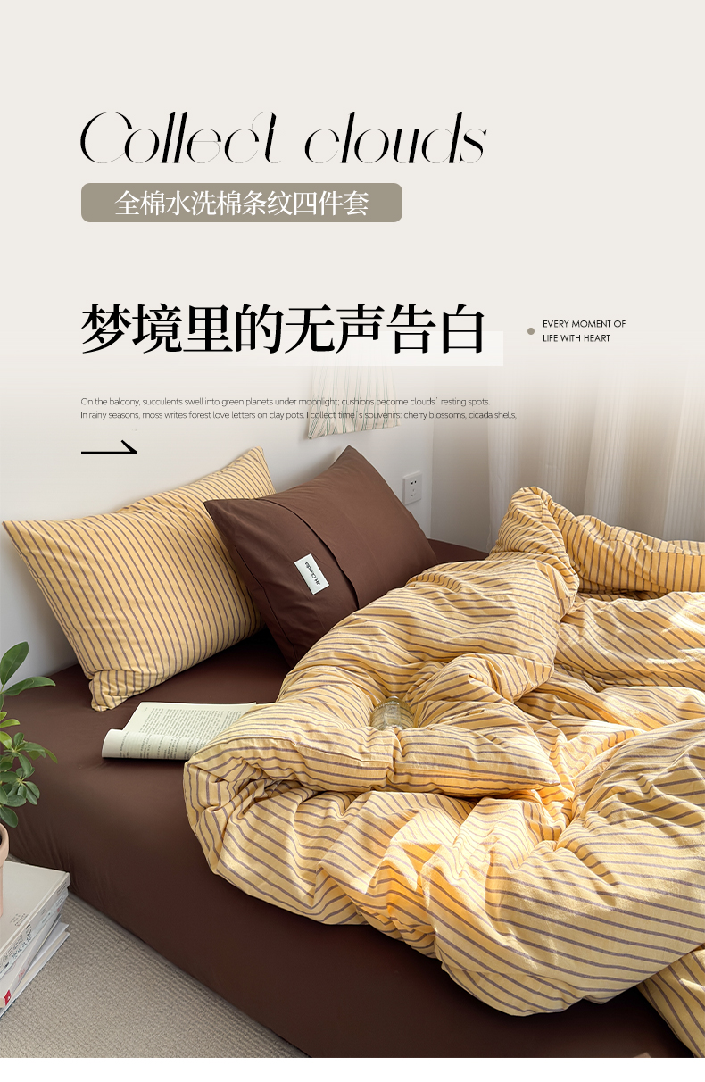 (总)2023年新款条纹日式良品纯棉全棉色织水洗棉四件套,粉密条,灰密条,绿密条,米密条