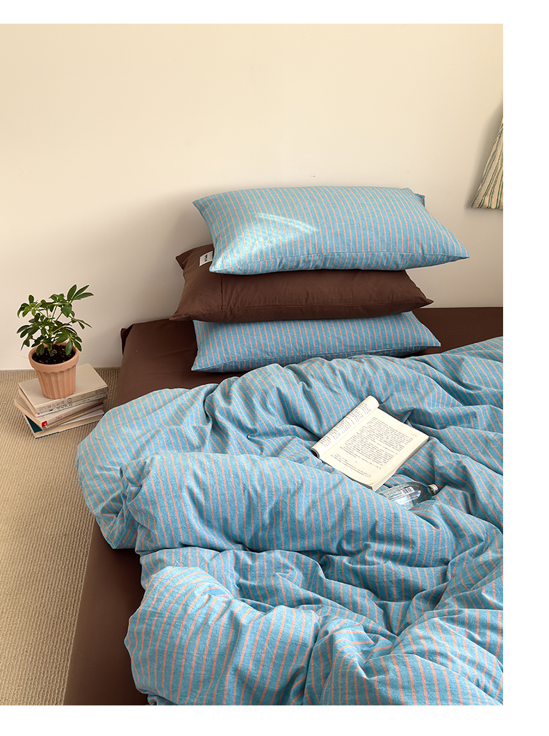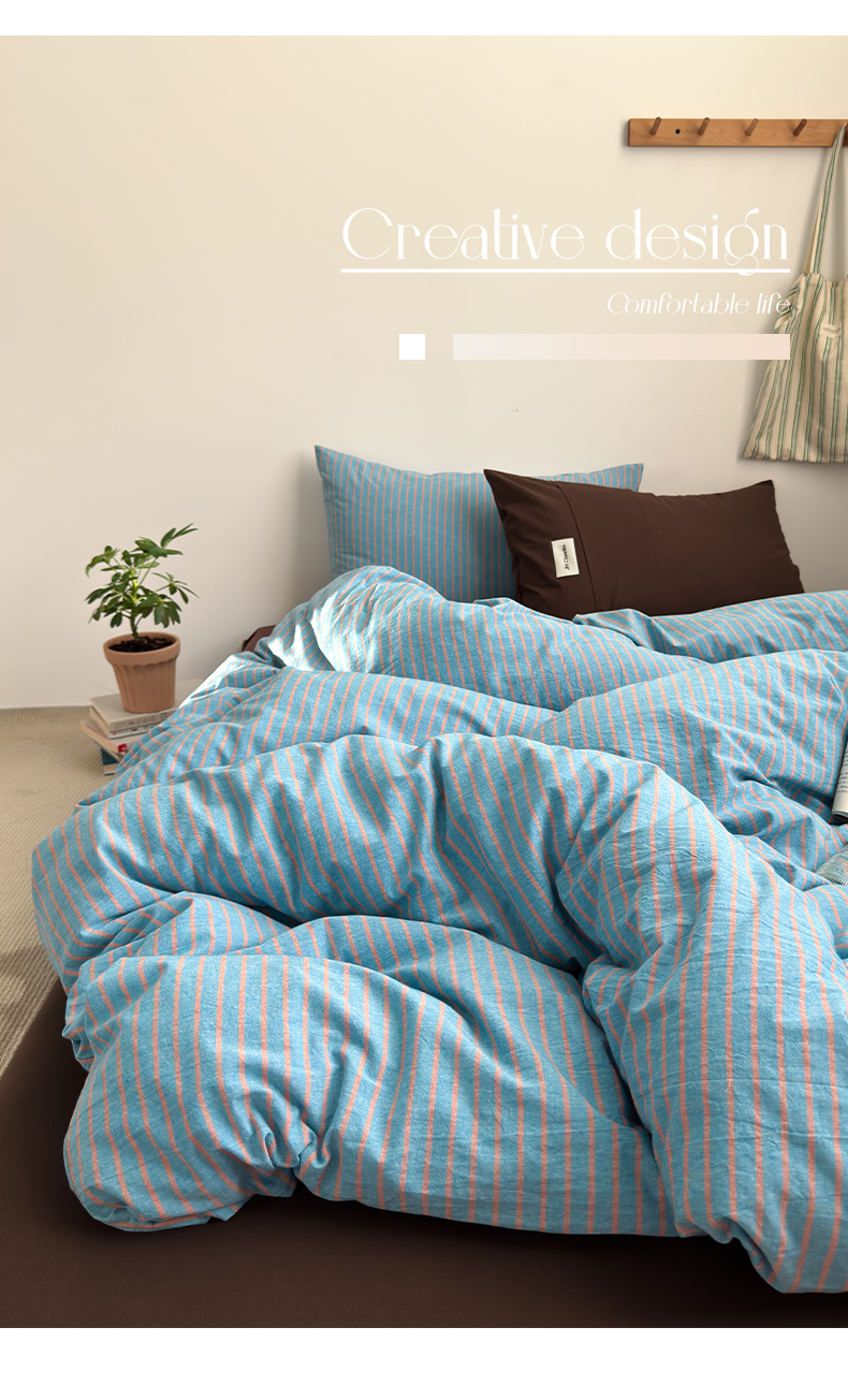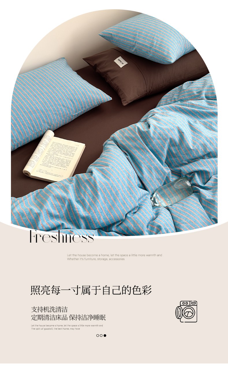 (总)玖弘家居 2025新款亲肤水洗棉四件套-蓝密条,蓝密条