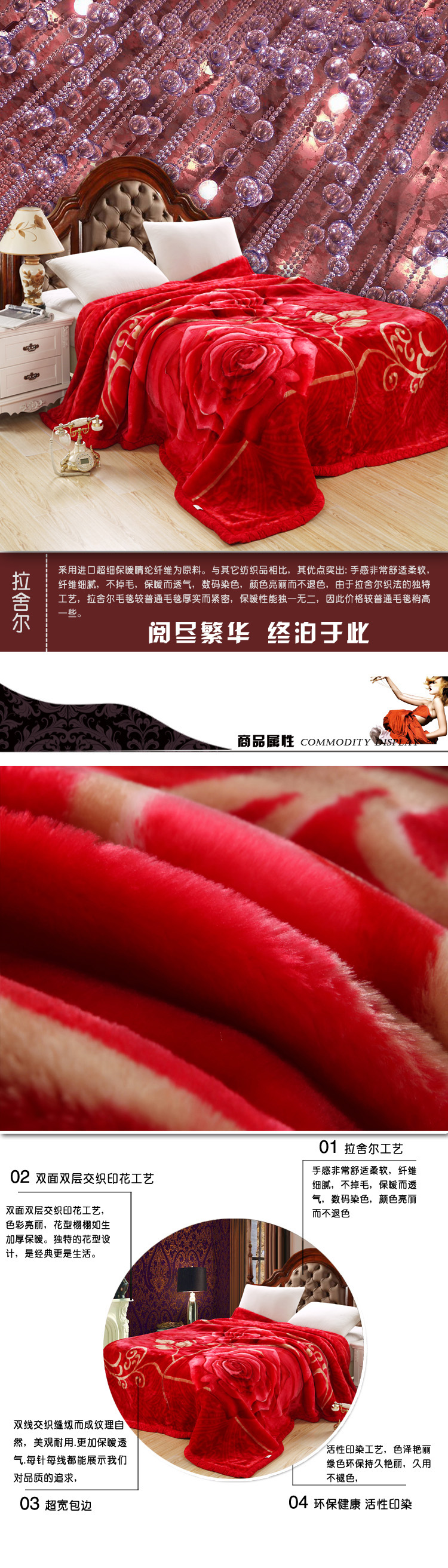 当前位置: 91家纺网 > 商品网购 > 毛毯休闲毯绒毯 > 毛毯 > 好艺佳毛毯 2025新款(经典版)拉舍尔毛毯学生毯宿舍婚庆加厚双层毯子绒毯盖毯不掉毛毛毯 玫瑰情深-大红
