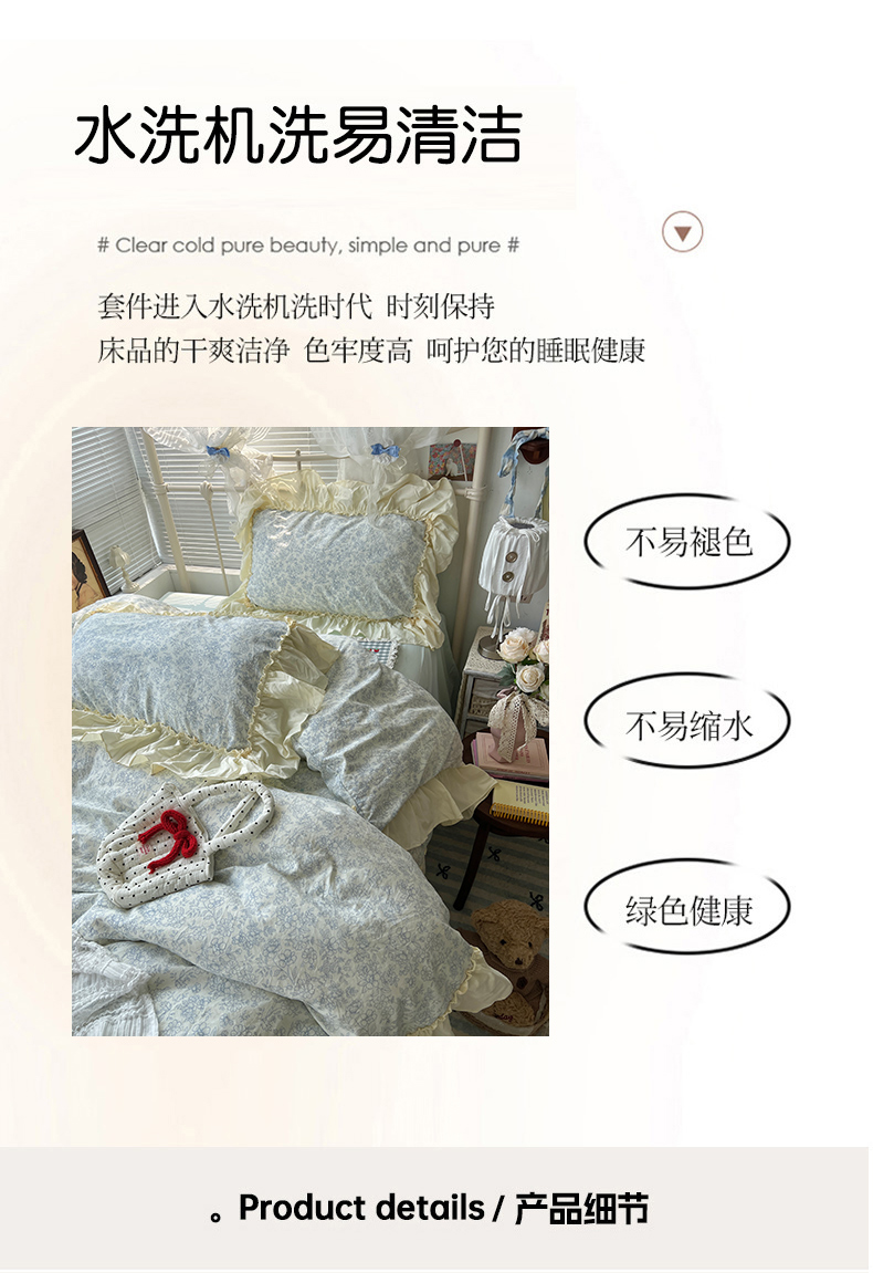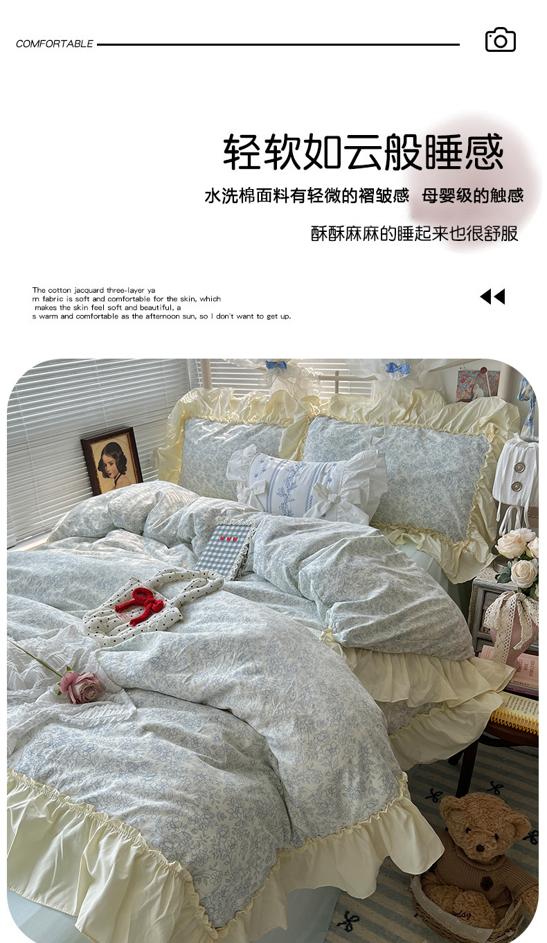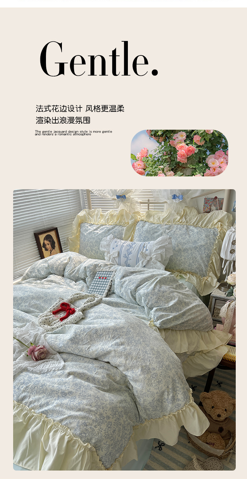 当前位置: 91家纺网 > 商品网购 > 床品套件 > 四件套 > 原素 2025开学季法式花边A类水洗棉四件套 夜曲