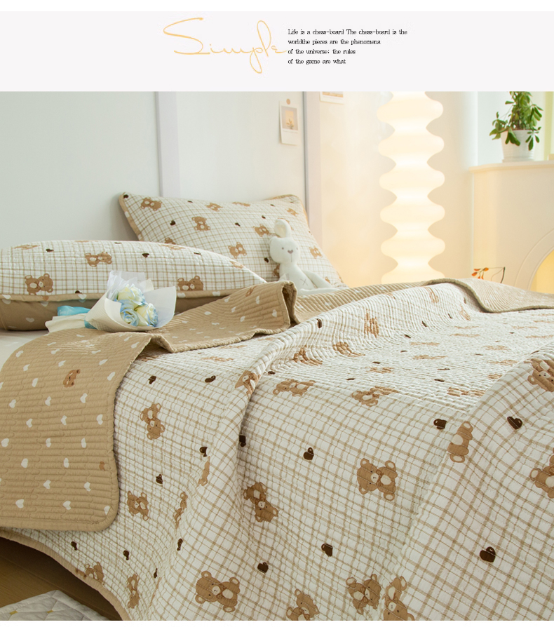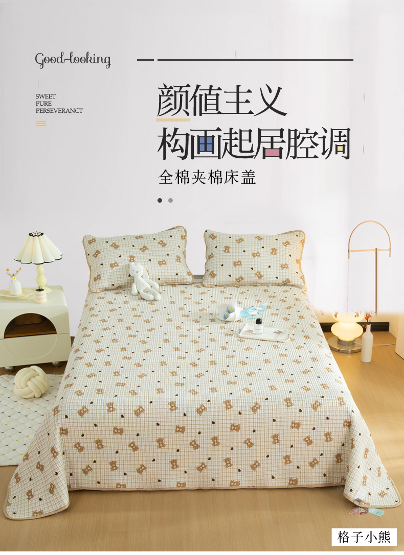 (总)橙子家居 2025新款双面全棉纯棉砂洗夹棉床盖三件套,粉木马,腊肠狗,梦露花园,苹果趣事,甜心南瓜,小熊贝蒂,樱桃派,组合图仅供展示,格子小熊,赫本,莫娇-黄,沁花-绿,薇恋时光,雾里花-粉,雅清