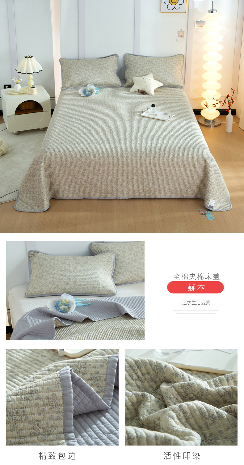 商品名称:橙子家居 2024新款高温水洗双面全棉纯棉斜纹13372印花款单品床盖(风格二) 雅清