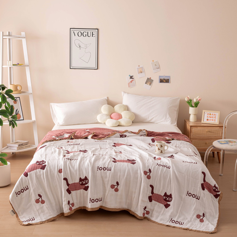 橙子家居 2024新款韩国泡芙被纯棉五层纱布空调被夏凉被 春秋被 樱桃夏梦-粉