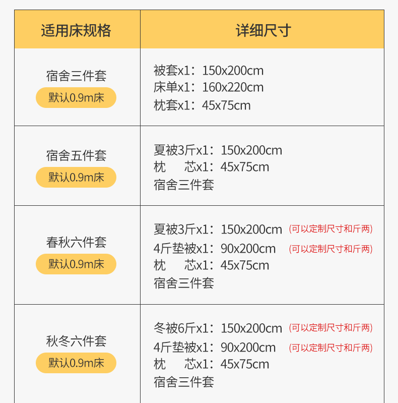 0.9m床春秋六件套 | ¥145.00 |