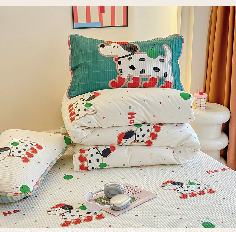 (总)橙子家居 2025新款双面纯棉夹层新疆棉花数码印花床盖四件套-第一批,斑点狗红,大眼萌红,粉蝴蝶结,花蔓蓝,花兔,花野,黄宽条,柿柿狗,淑女狗,兔兔熊,英文猫粉,樱为有你