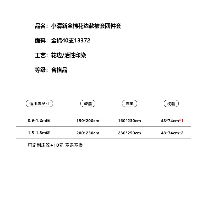 【床笠款】1.8四件套-被套200x230 | ¥135.00 |