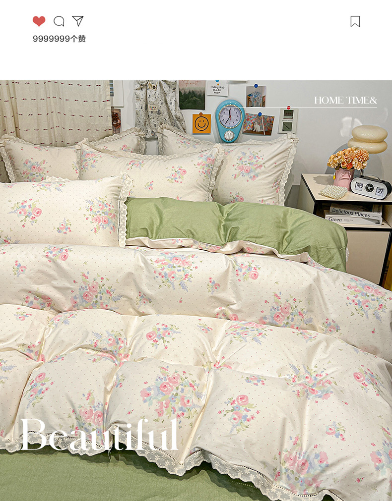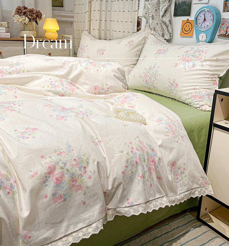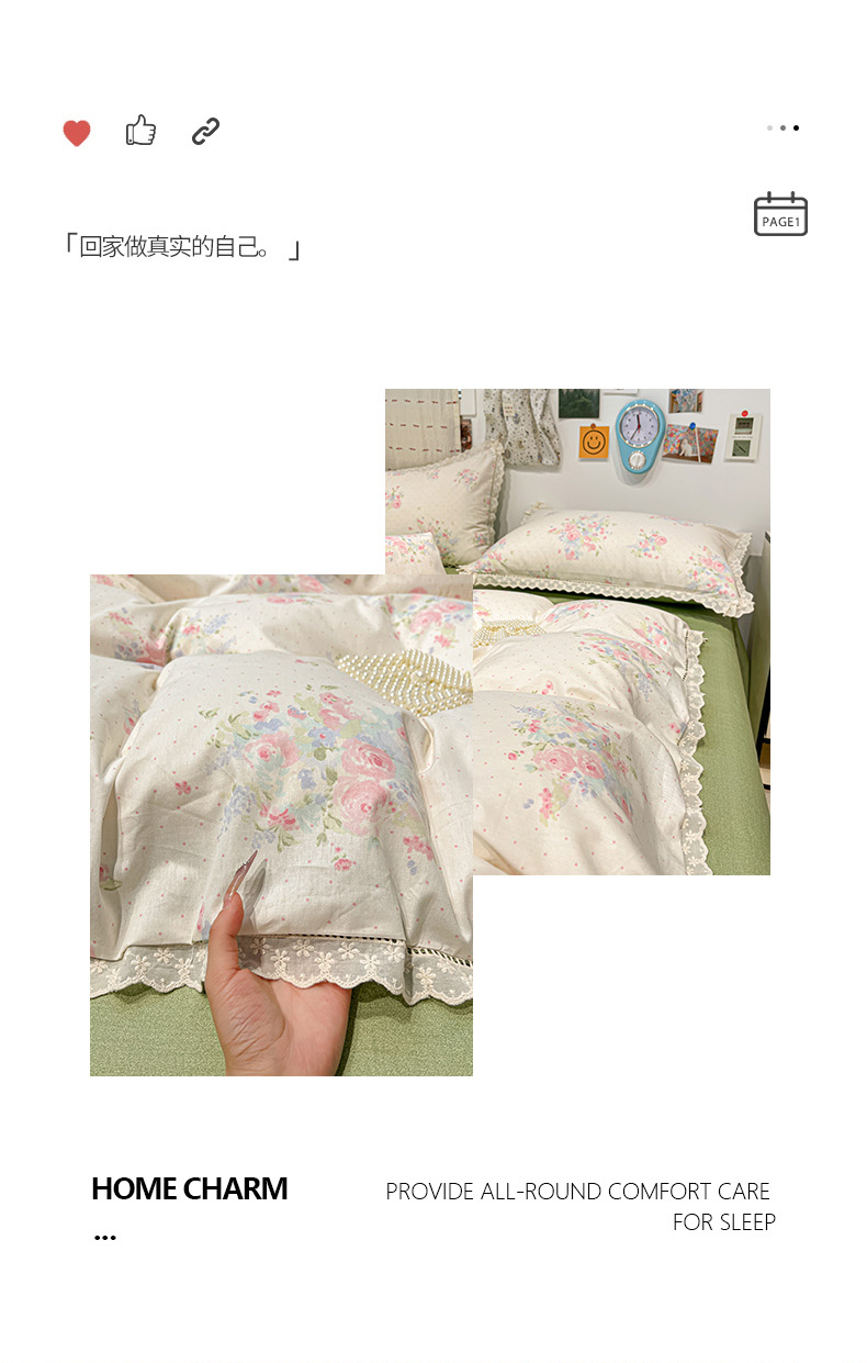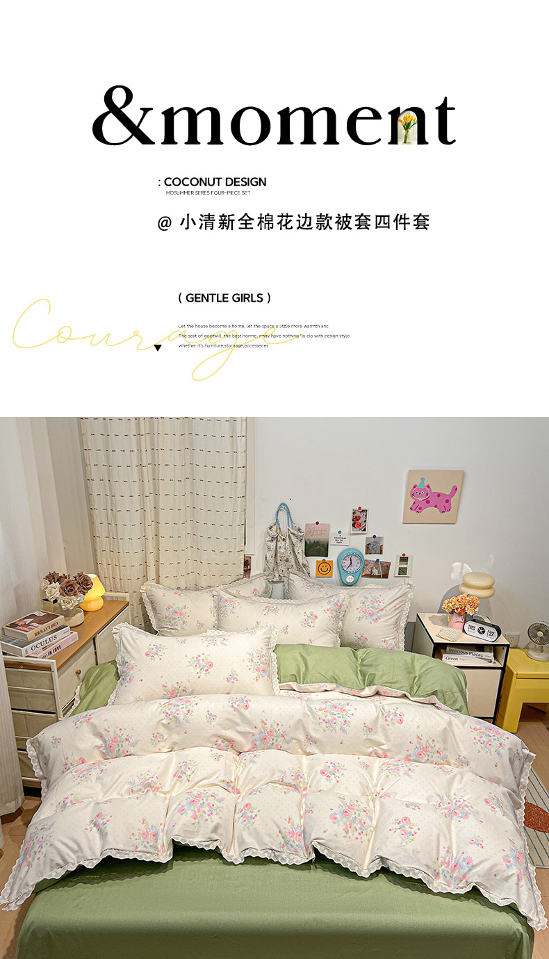 当前位置: 91家纺网 > 商品网购 > 床品套件 > 四件套 > 全棉普通四件套 > 橙子家居 2025新款小清新全棉纯棉花边款床单四件套 甜甜夏日