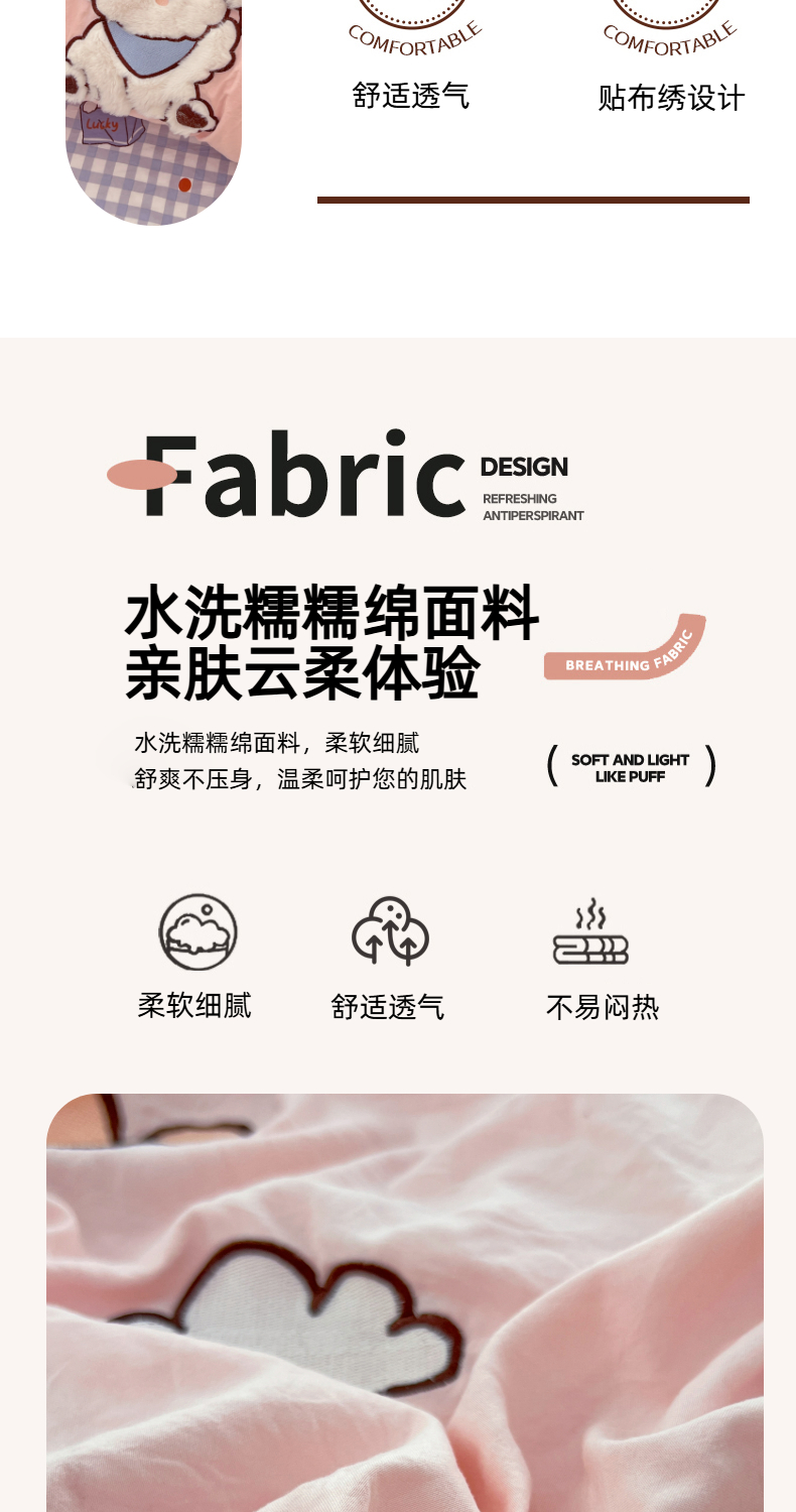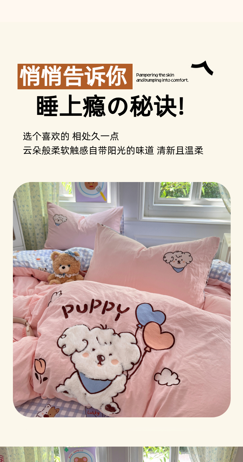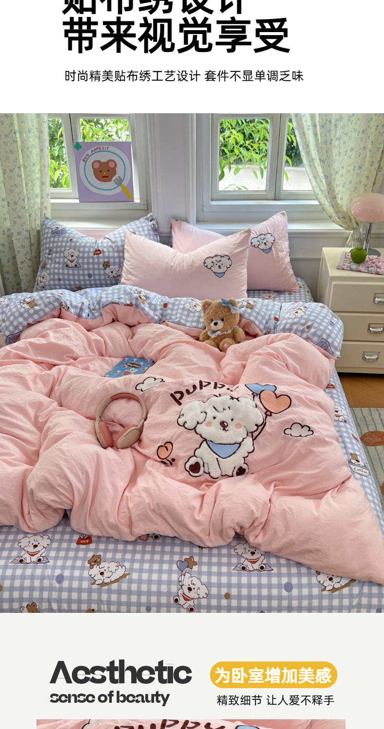 当前位置: 91家纺网 > 商品网购 > 床品套件 > 四件套 > 水洗棉四件套 > 优尚佳生活馆 2025新款水洗棉印花贴布绣四件套【提供买家秀】 粉糯小狗窝