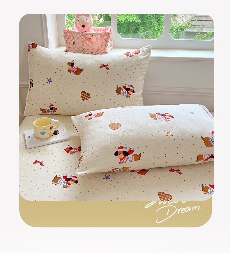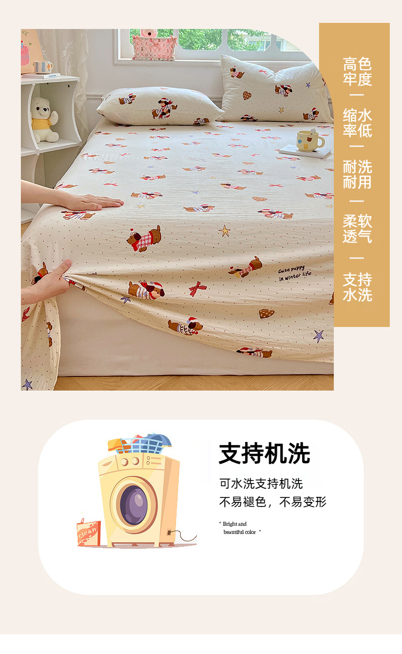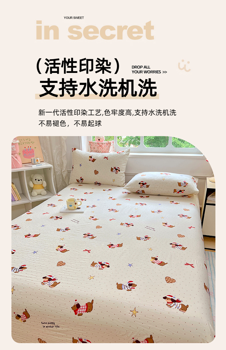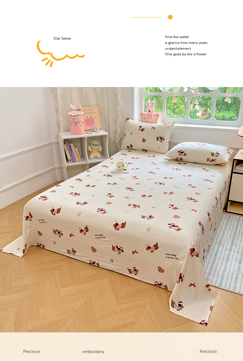 优尚佳生活馆 2025新款亲肤水洗棉印花床单单品床单单件单床单 床单款-可爱腊肠狗