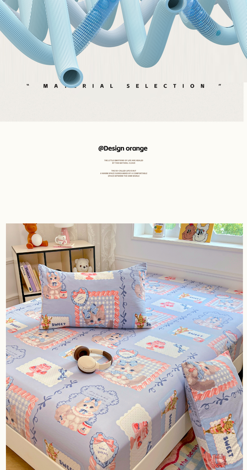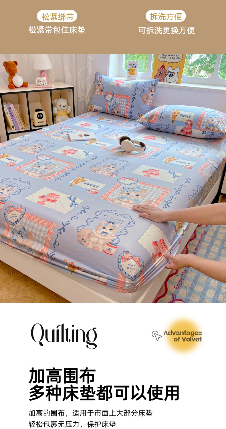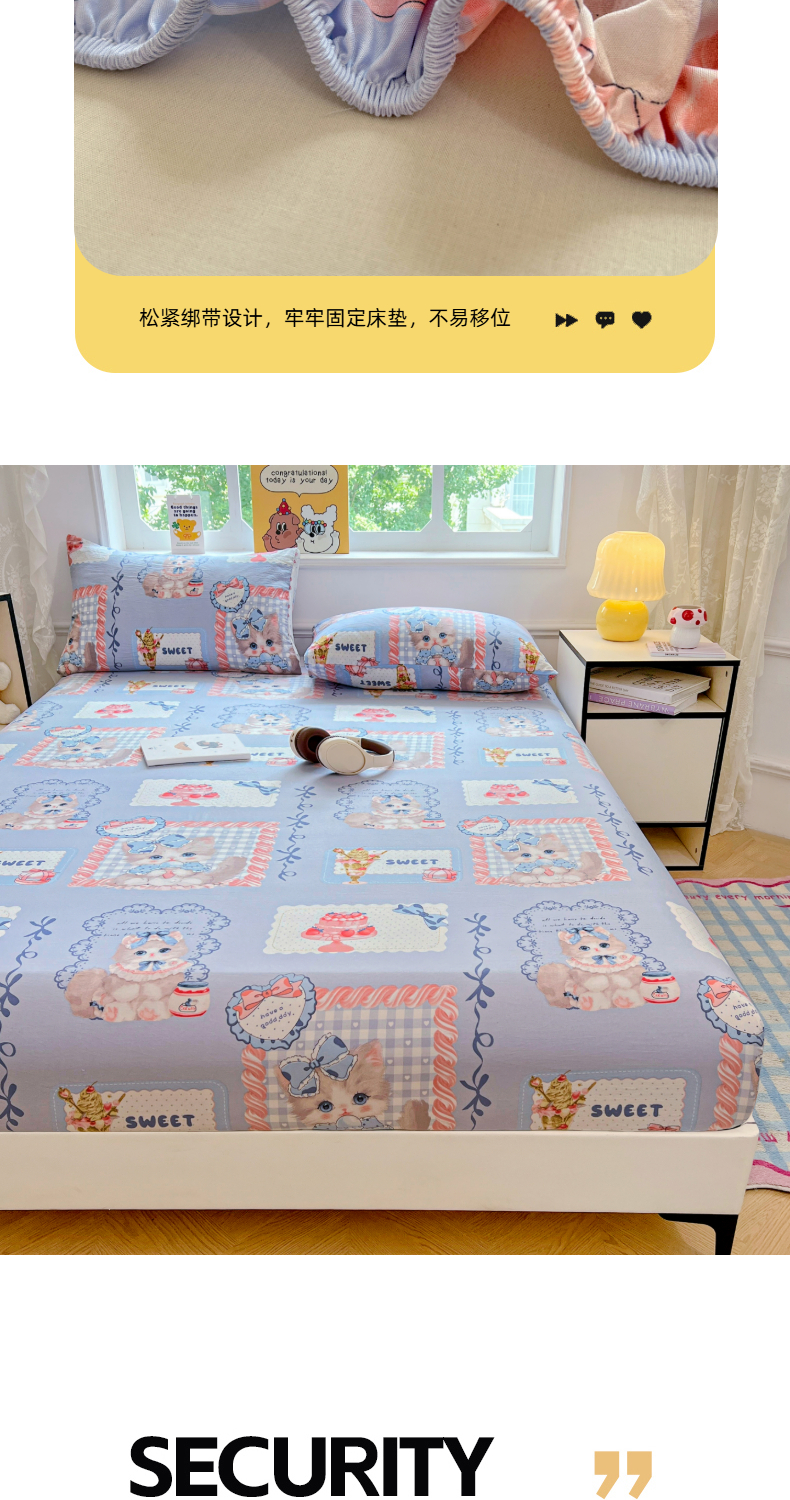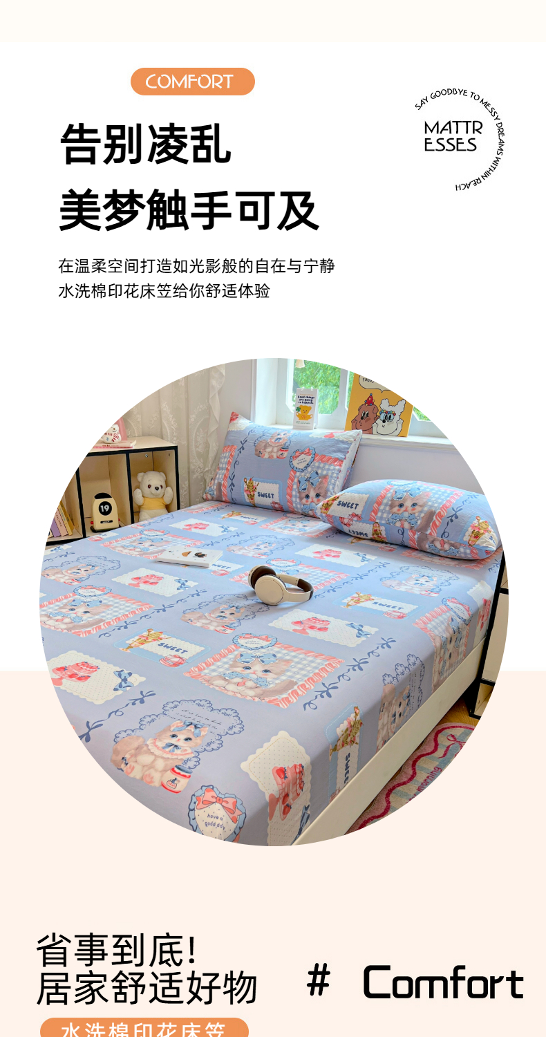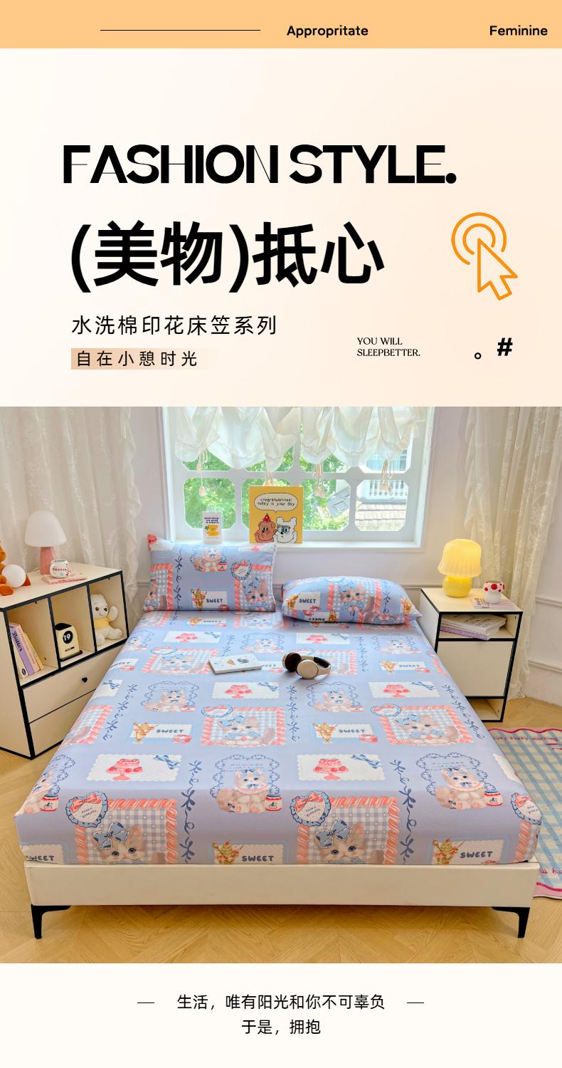 优尚佳生活馆 2025新款亲肤水洗棉印花床笠单品床笠单件单床笠 床笠款-甜趣猫咪
