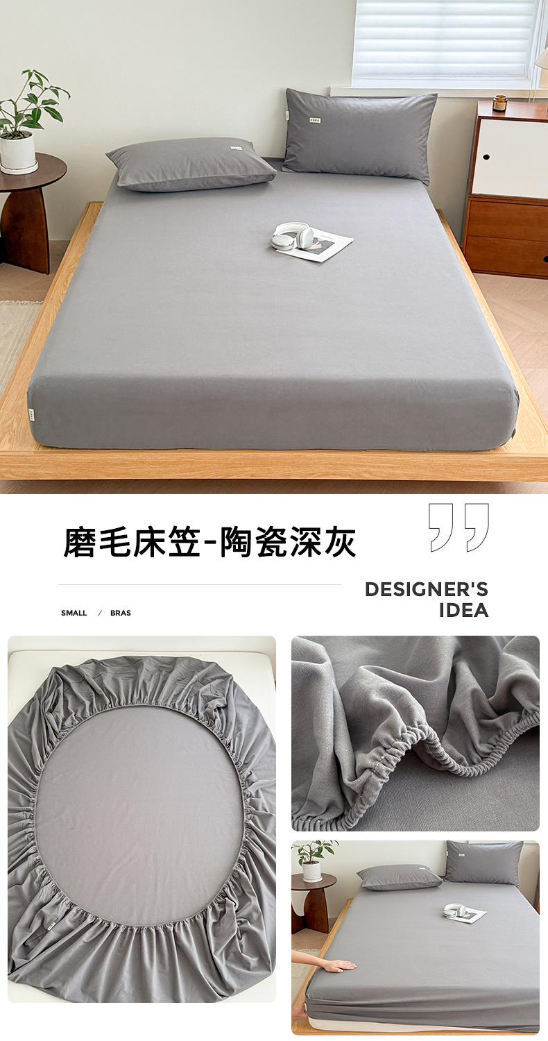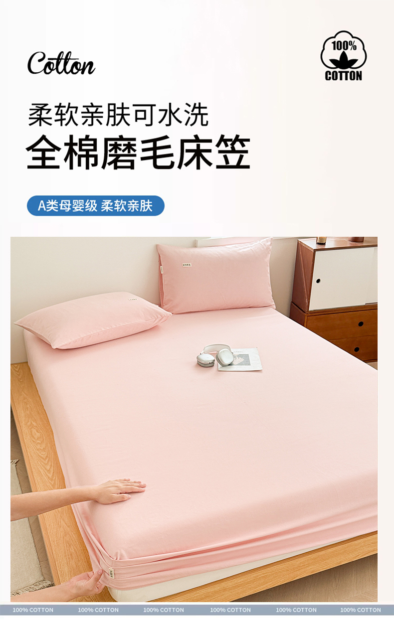 • 91家纺网 家纺一手货源 找家纺 眠博士 2025新款A类纯色全棉磨毛大床床笠三件套 磨毛床笠-陶瓷粉