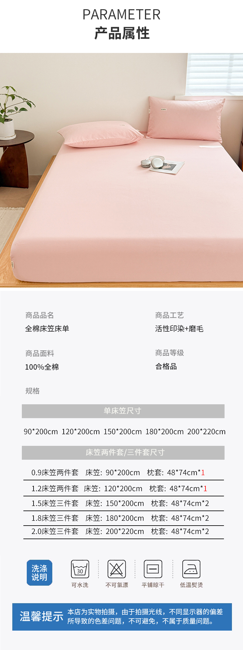 当前位置: 91家纺网 > 商品网购 > 床上用品 > 床笠 > 眠博士 2025新款A类纯色全棉磨毛大床床笠三件套 磨毛床笠-陶瓷粉