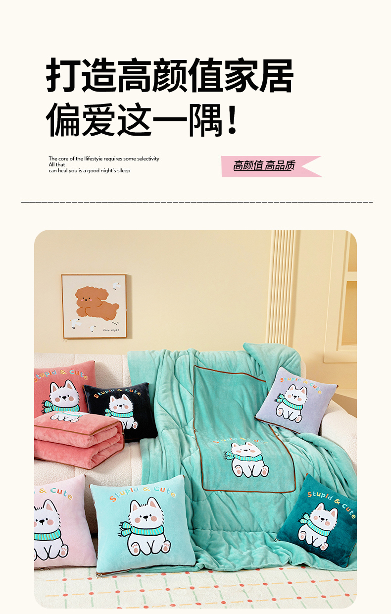 (总)阳光依佰抱枕被 2025秋冬新款牛奶绒多功能抱枕被系列-调皮狗,调皮狗---薄荷绿,调皮狗---浅蓝色,调皮狗---丁香紫,调皮狗---孔雀绿,调皮狗---神秘黑,调皮狗---西瓜红,调皮狗---樱花粉
