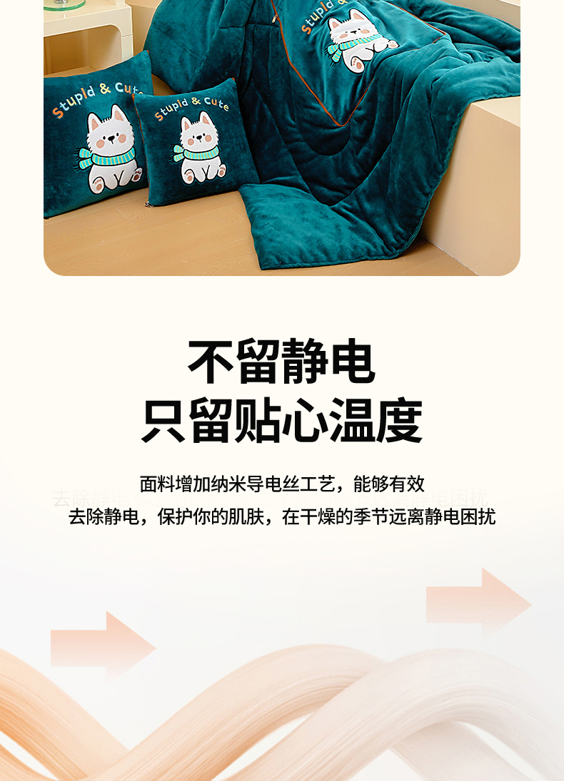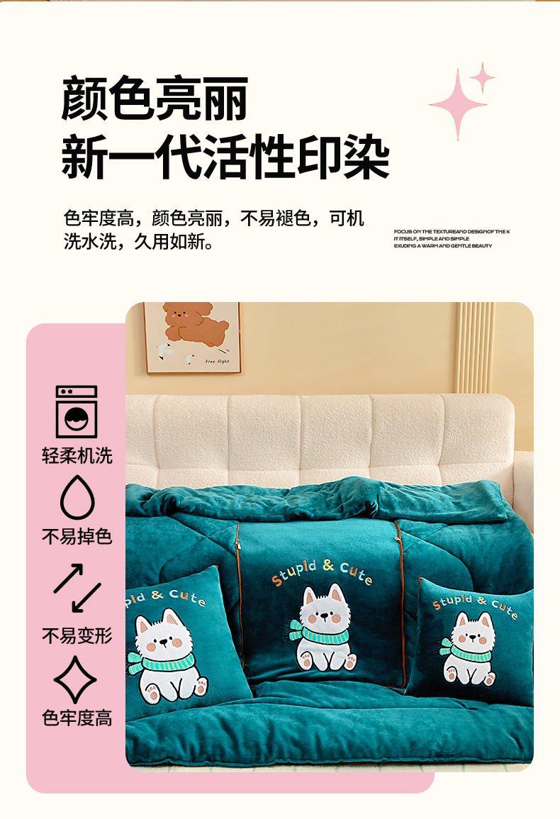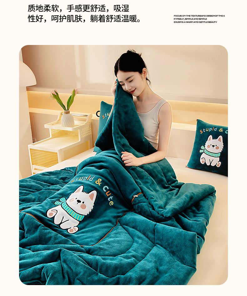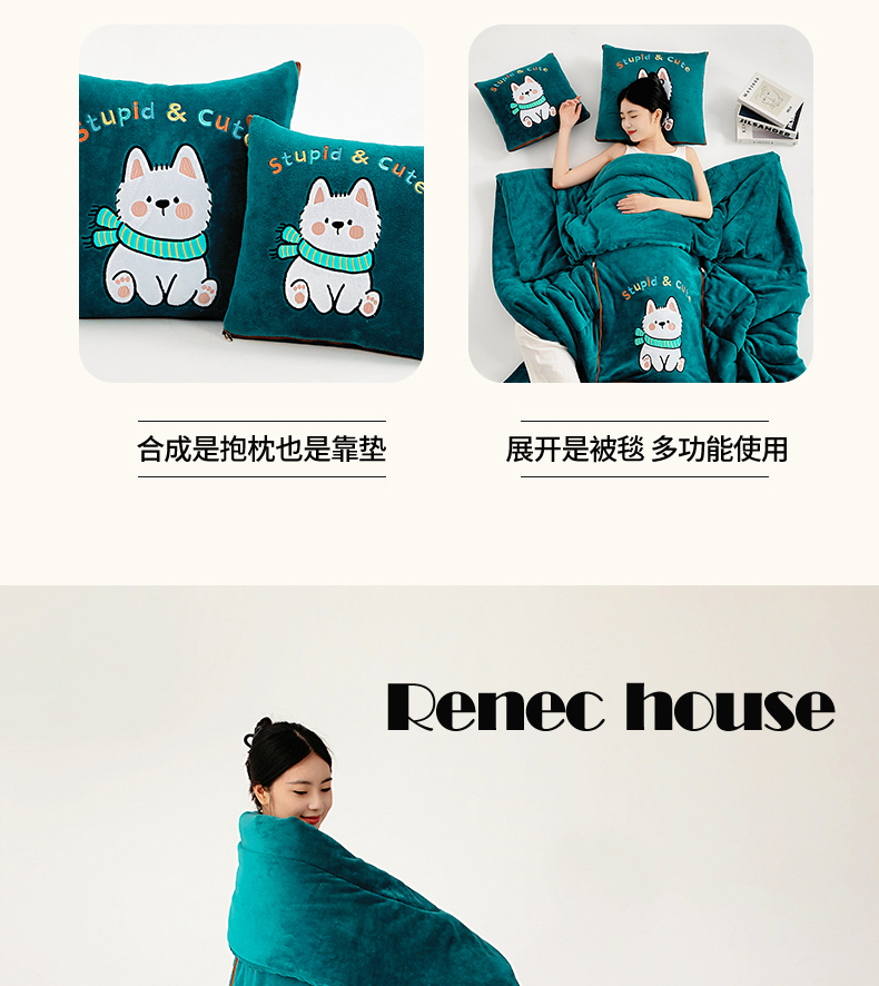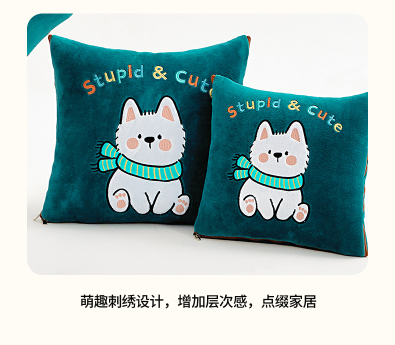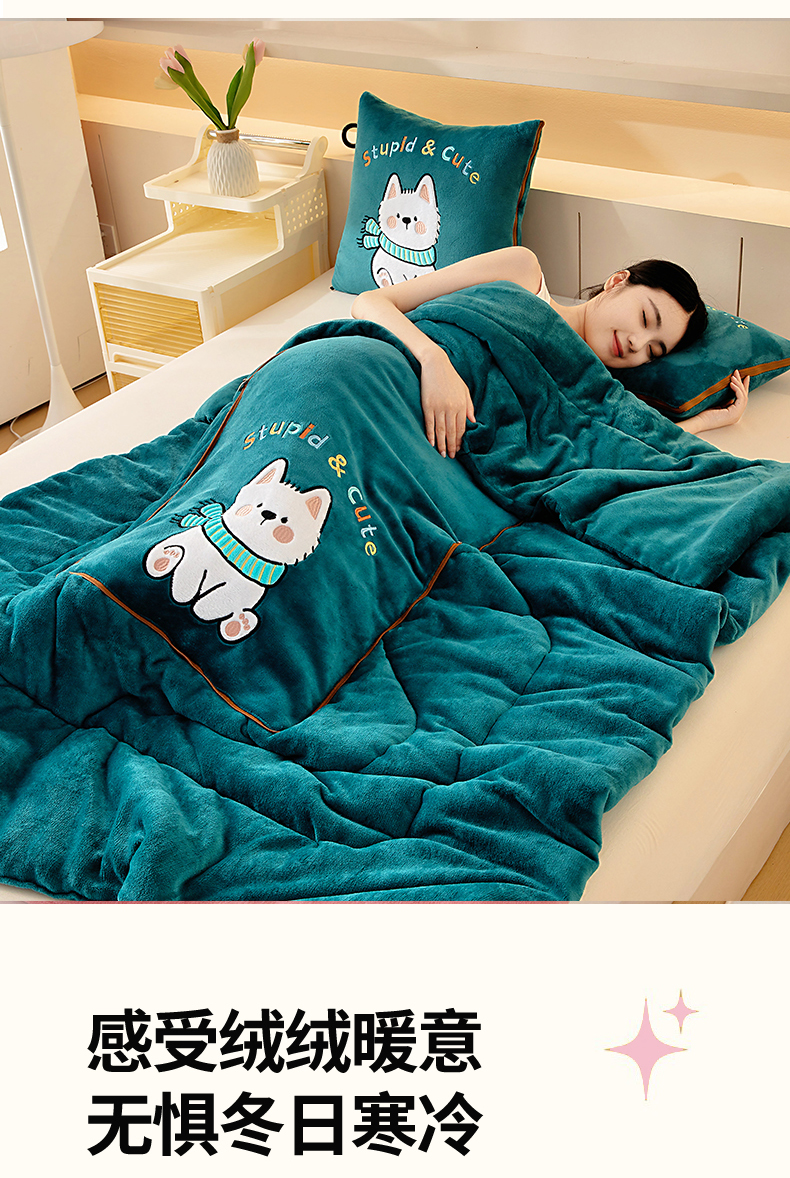 商品名称:阳光依佰抱枕被 2025秋冬新款牛奶绒多功能抱枕被系列-调皮狗 调皮狗---孔雀绿