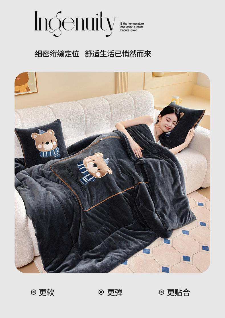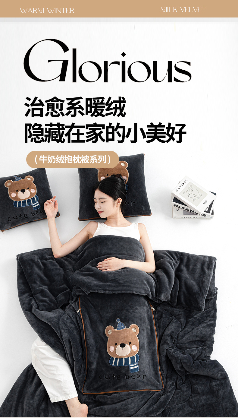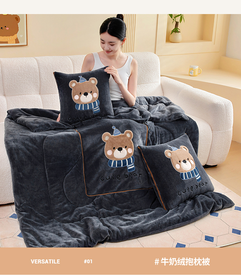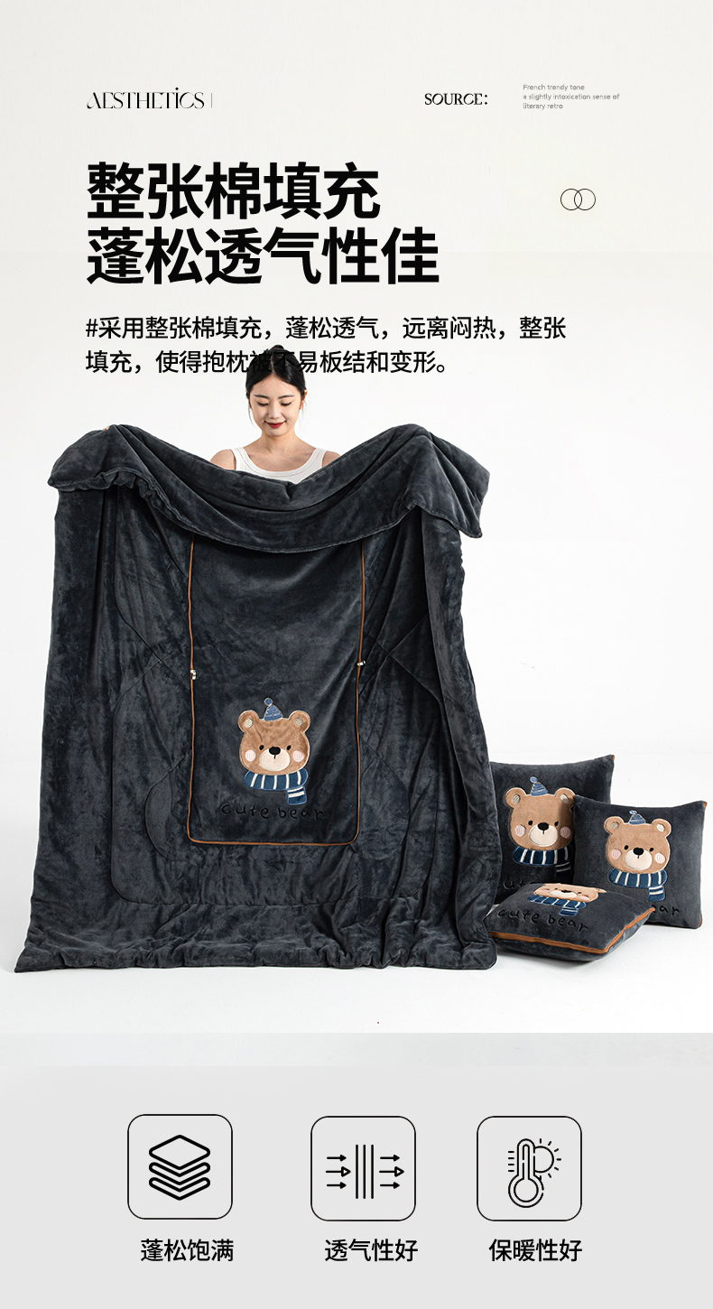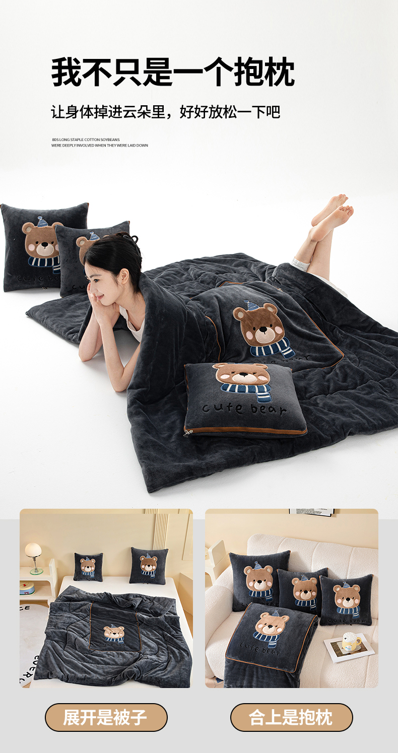 阳光依佰抱枕被 2025秋冬新款牛奶绒多功能抱枕被系列-抱抱熊 抱抱熊---神秘黑