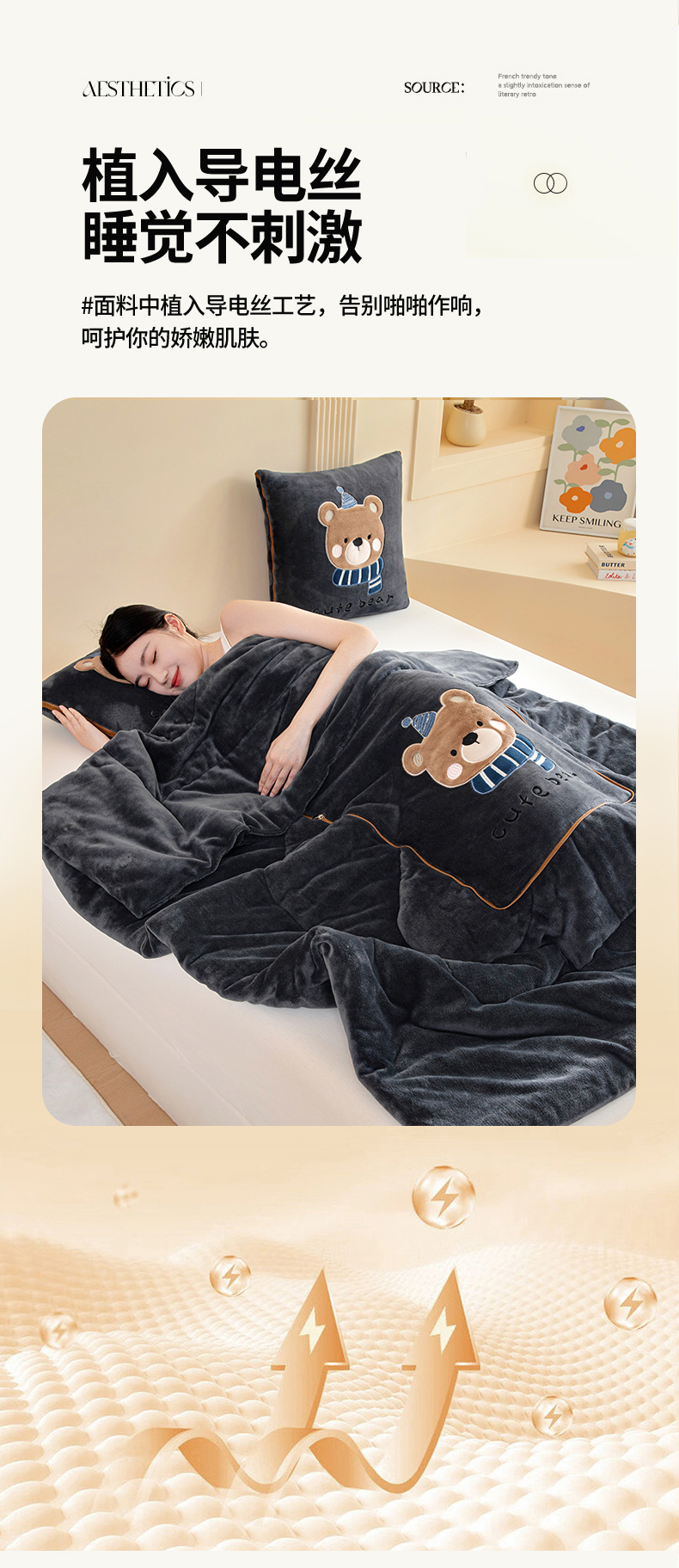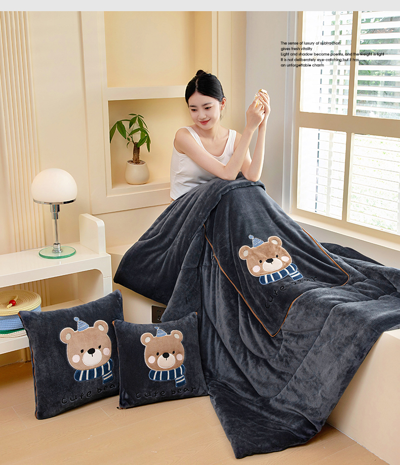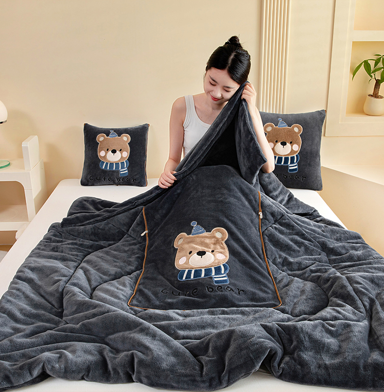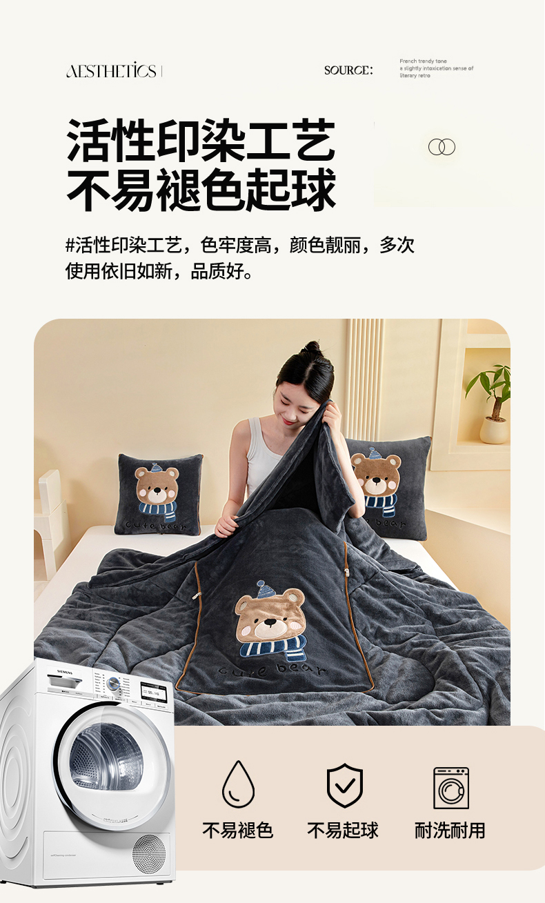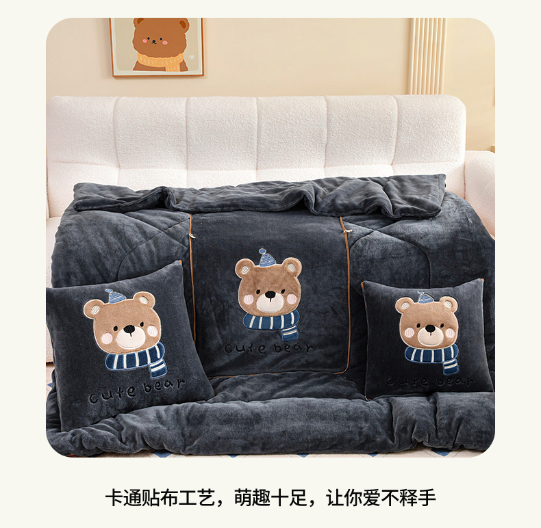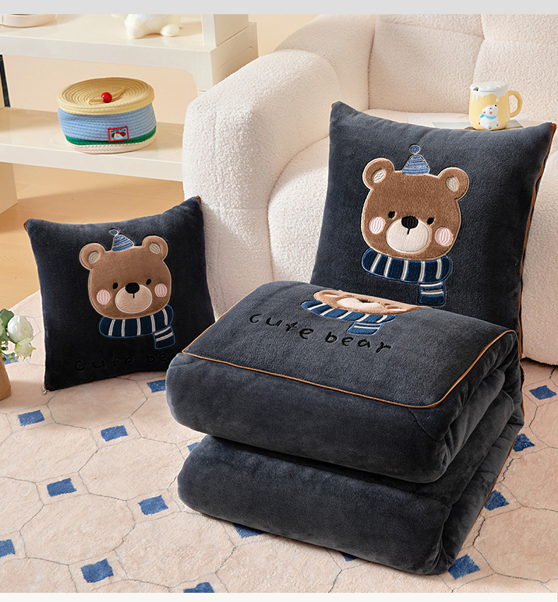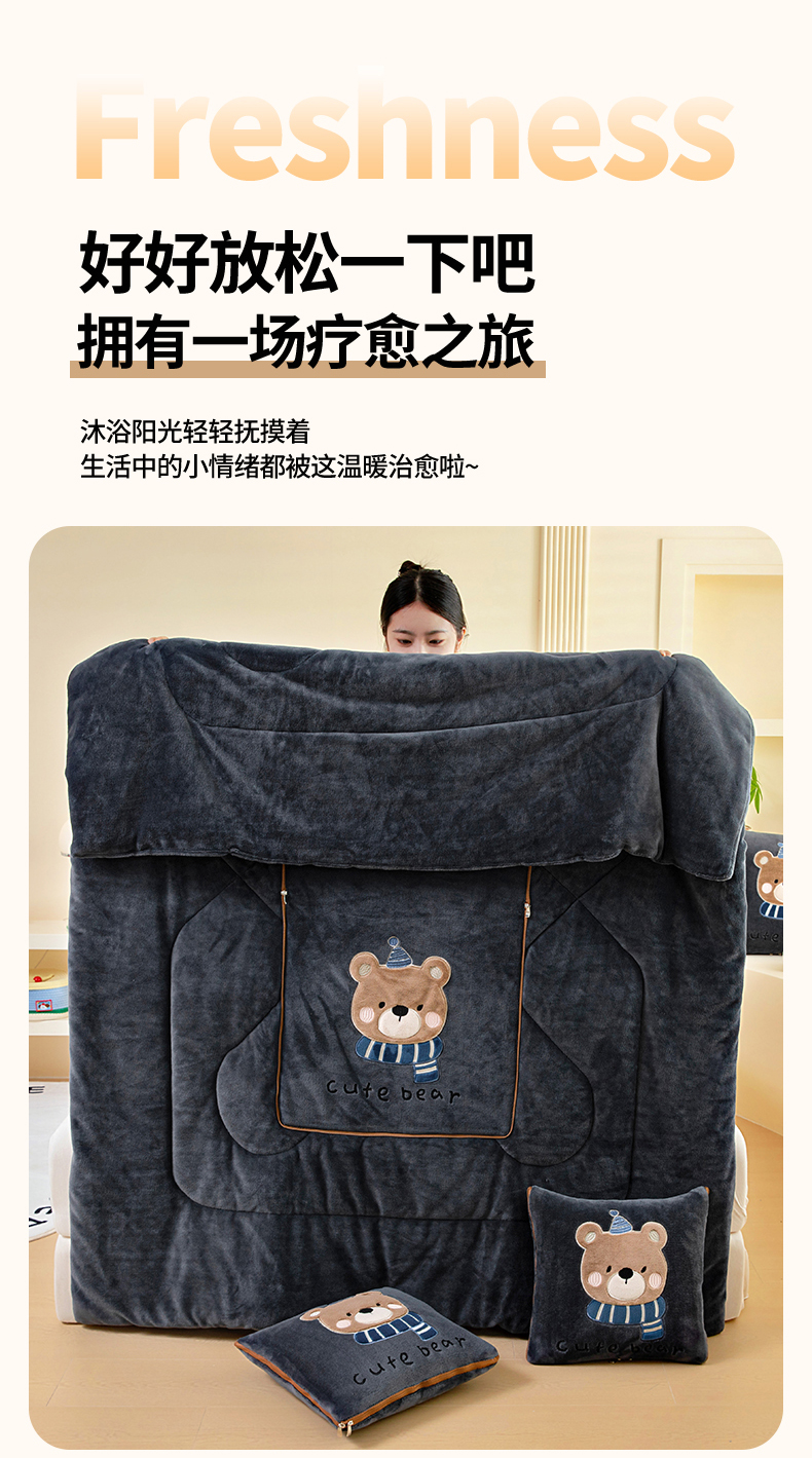 阳光依佰抱枕被 2025秋冬新款牛奶绒多功能抱枕被系列-抱抱熊 抱抱熊---神秘黑