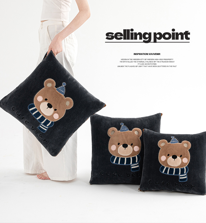 商品名称:阳光依佰抱枕被 2025秋冬新款牛奶绒多功能抱枕被系列-抱抱熊 抱抱熊---神秘黑