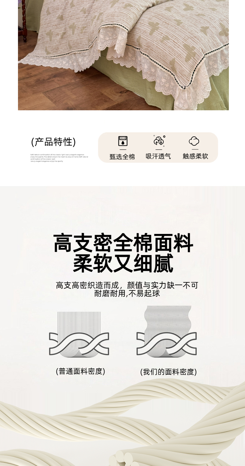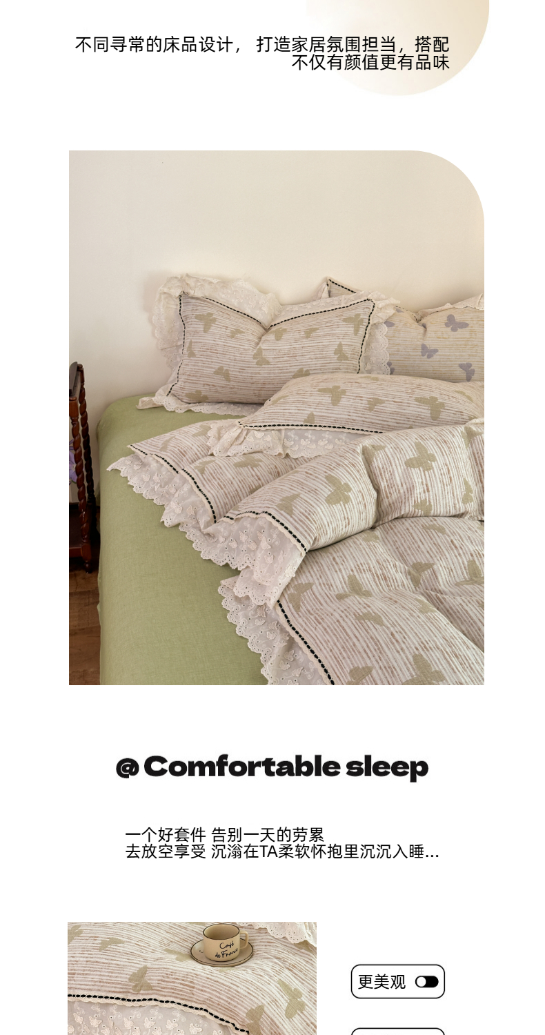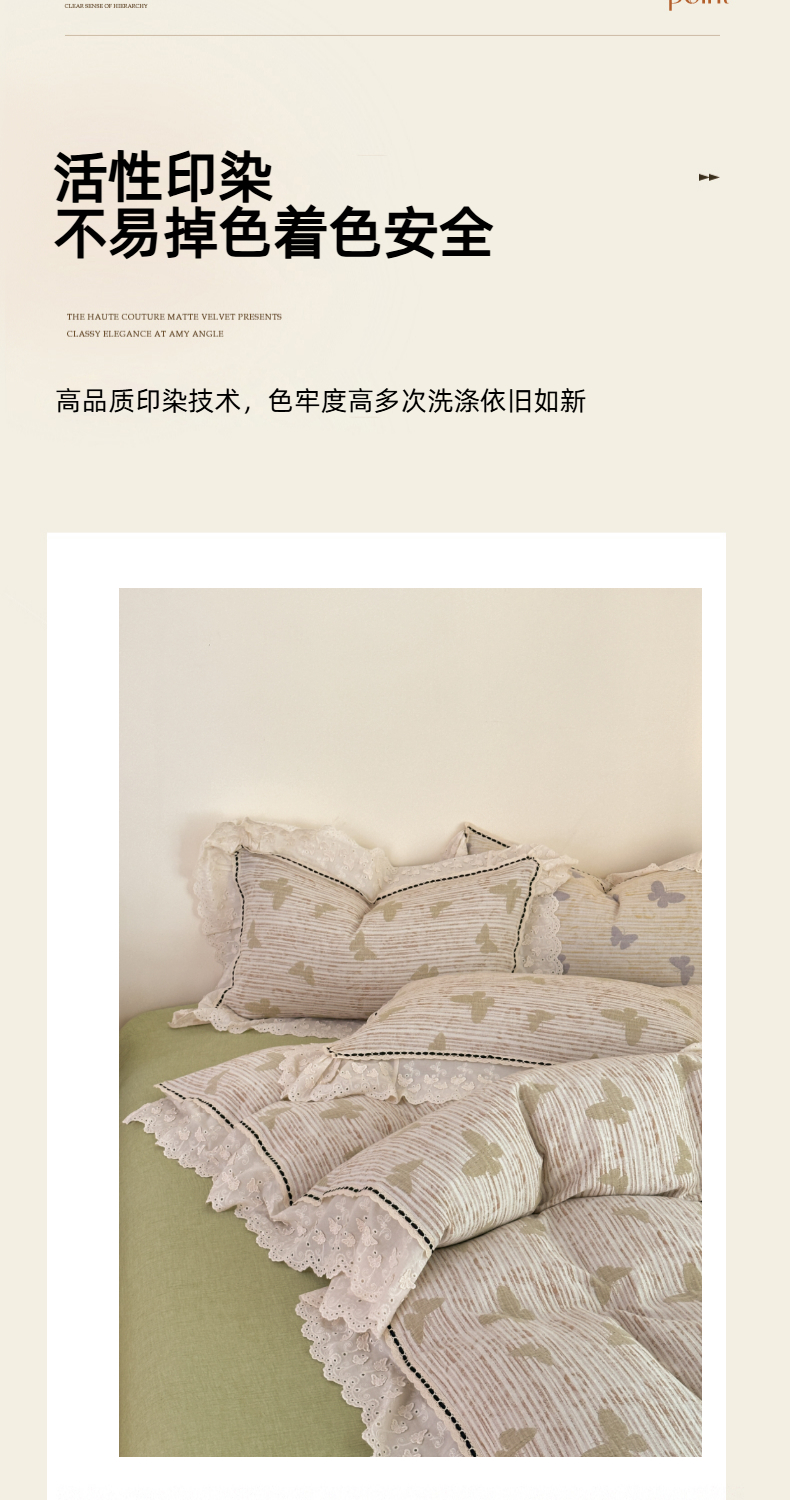商品名称:淑女公社家纺 2025秋冬新款法式空气提花皱皱纱四件套-蝶舞 蝶舞 抹茶绿