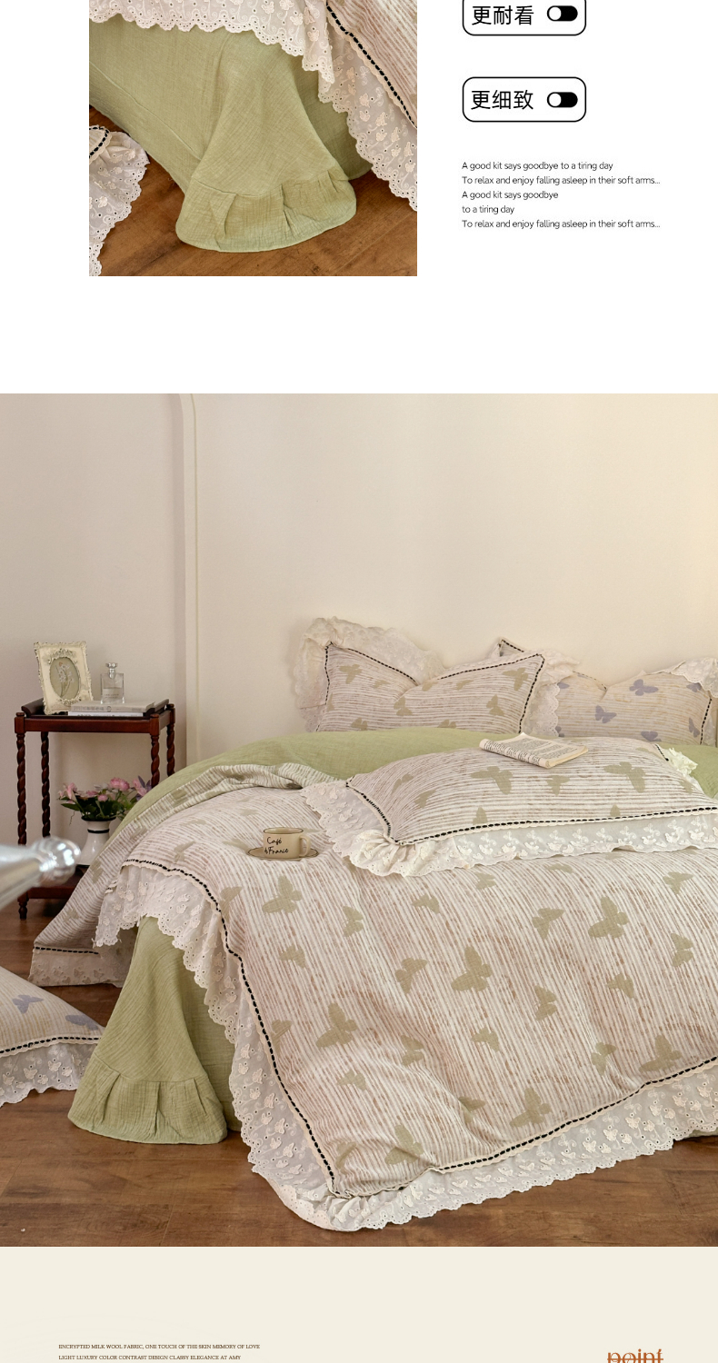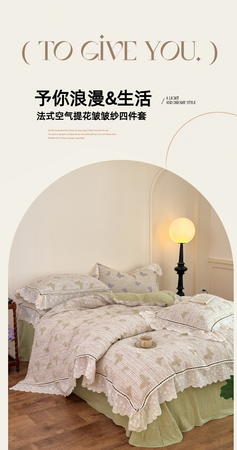 淑女公社家纺 2025秋冬新款法式空气提花皱皱纱四件套-蝶舞 蝶舞 抹茶绿