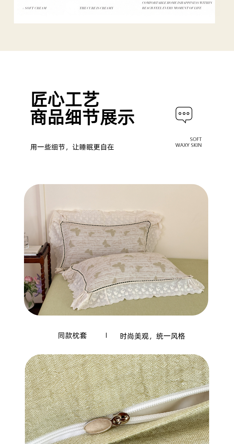 (总)淑女公社 2022新款全棉四件套纯棉少女心事系列直播,初恋粉,奶油黄,春天绿,海洋蓝